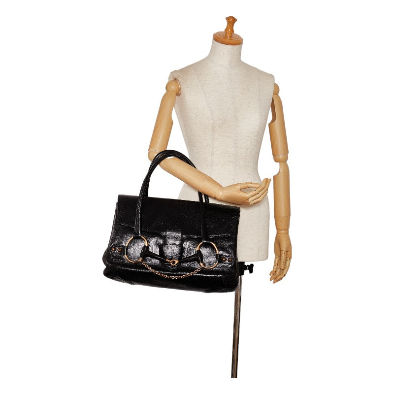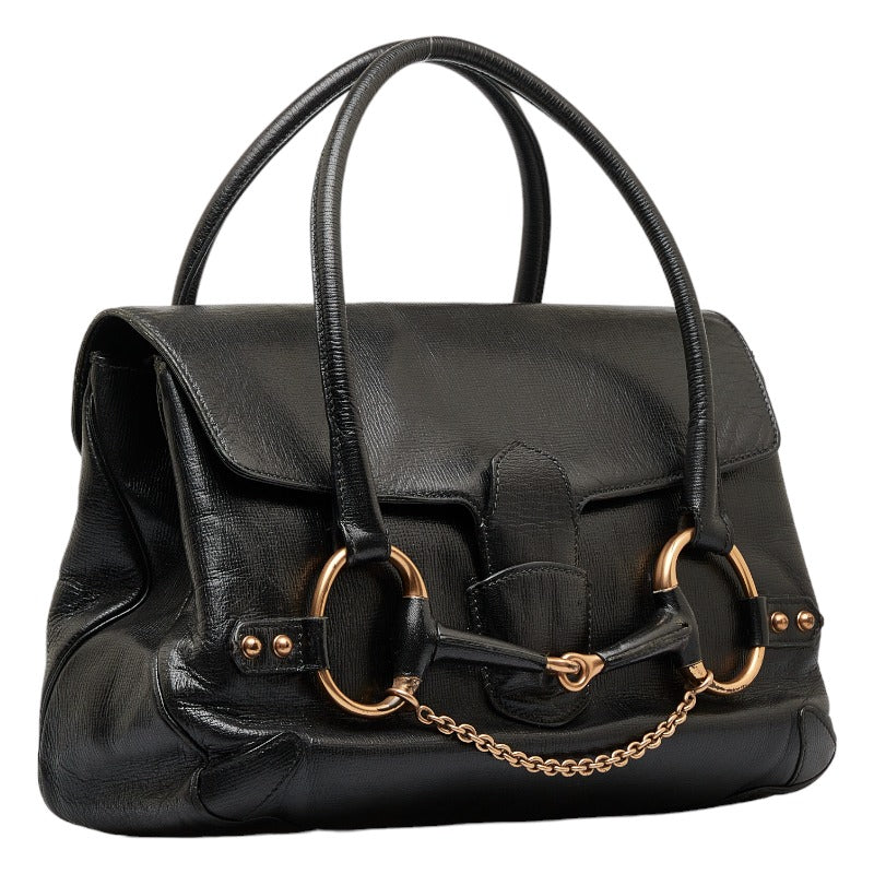 グッチ ホースビット ハンドバッグ トートバッグ 120983 ブラック レザー レディース GUCCI 【中古】