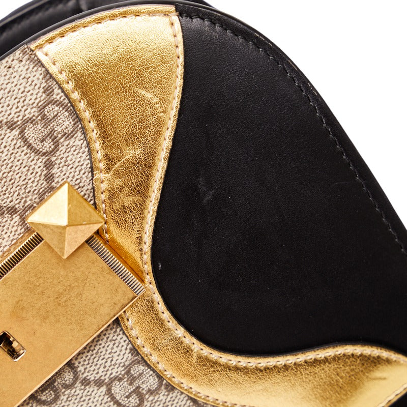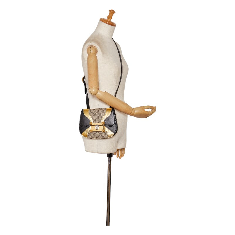 グッチ オジリデ 斜め掛け ショルダーバッグ 500781 ブラック ゴールド ベージュ レザー PVC レディース GUCCI 【中古】