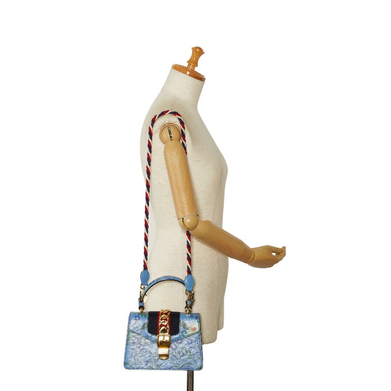 グッチ シルヴィ フラワー ミニ ハンドバッグ ショルダーバッグ 2WAY 470270 ブルー マルチカラー レザー レディース GUCCI 【中古】