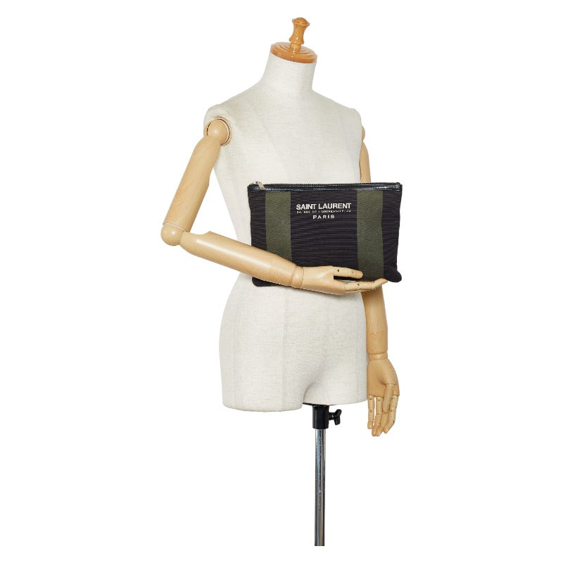 サンローラン クラッチバッグ セカンドバッグ 414764 ブラック カーキ キャンバス メンズ SAINT LAURENT 【中古】