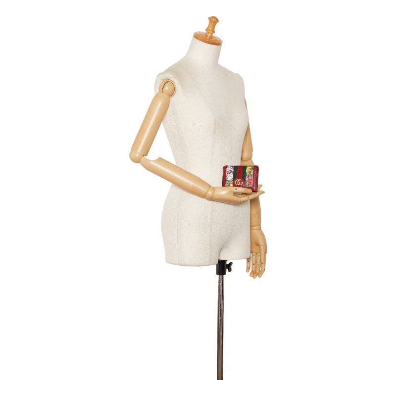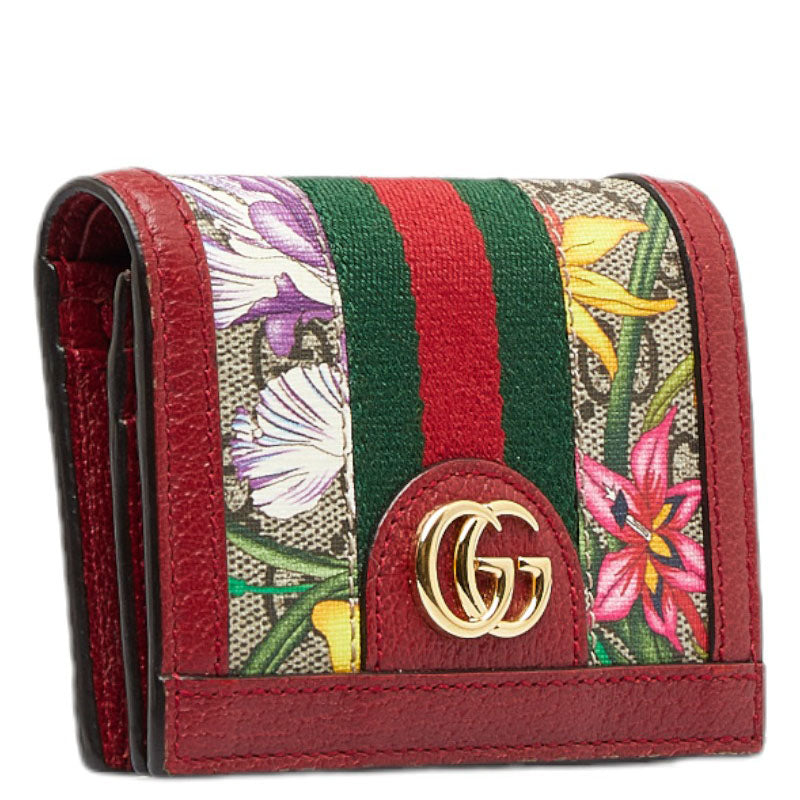 グッチ オフィディアGG フローラ 二つ折り財布 ベージュ レッド PVC レザー レディース GUCCI 【中古】