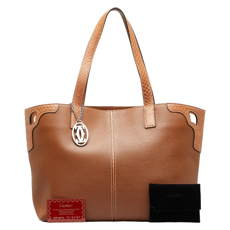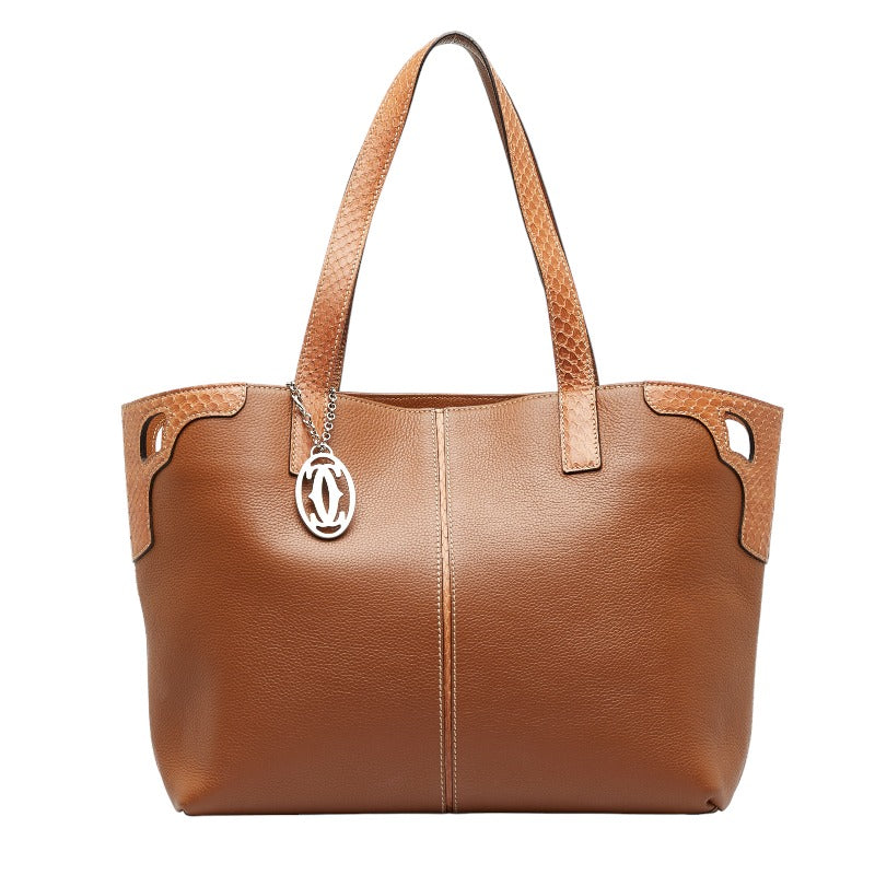 カルティエ マルチェロ ドゥMM ハンドバッグ トートバッグ ブラウン レザー レディース CARTIER 【中古】