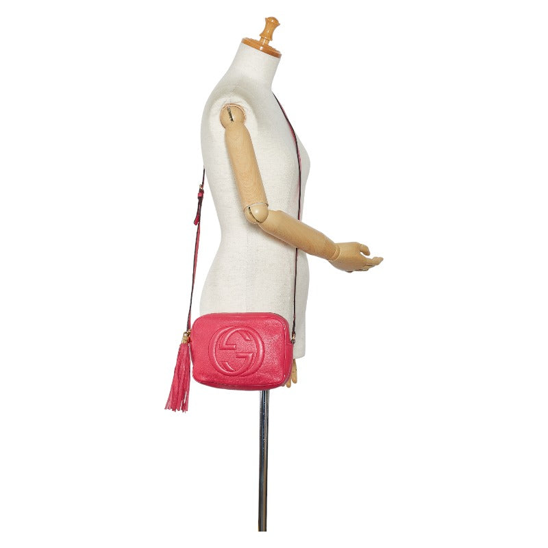 グッチ インターロッキングG ソーホー タッセル スモールディスコ 斜め掛け ショルダーバッグ 308364 ピンク レザー レディース GUCCI 【中古】