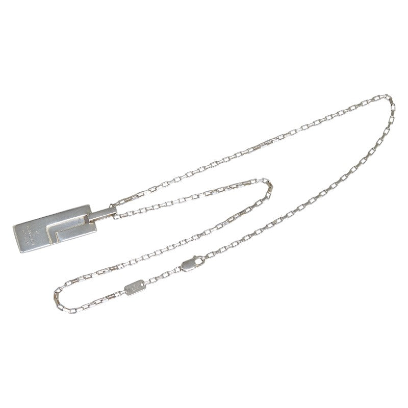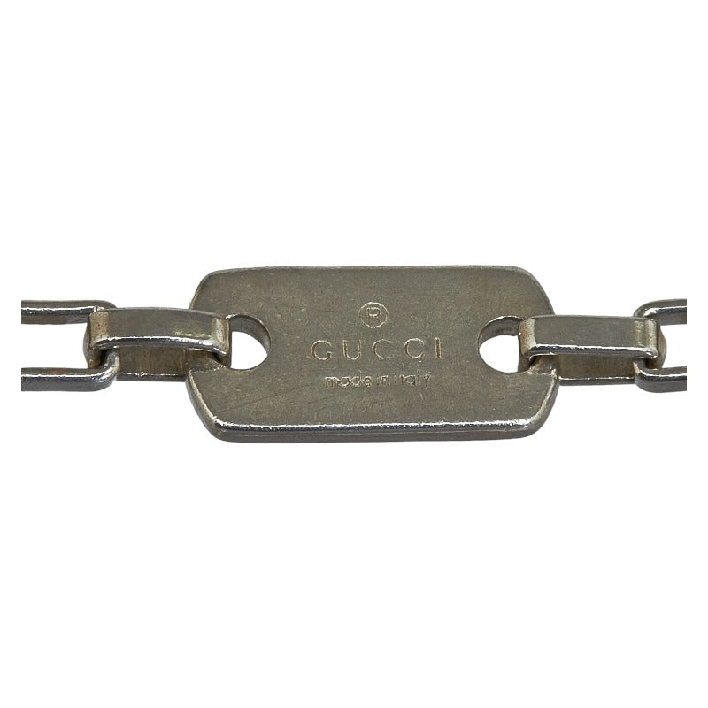グッチ ロゴ Gプレート チェーン ネックレス シルバー メタル レディース GUCCI 【中古】