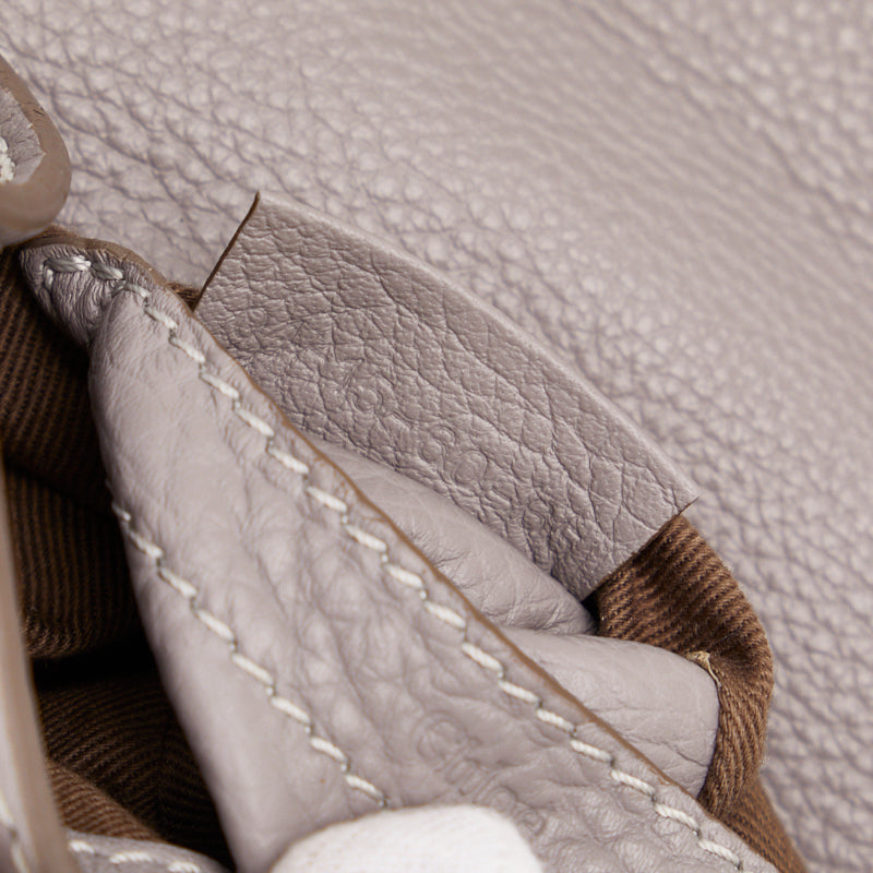 外側⇒型崩れ、オープンポケット内側に生地浮き サイド⇒型崩れ・コバひび割れ 底面⇒型崩れ・コバひび割れ ショルダー⇒ヨレ・金具跡・ベルト穴肥大・コバひび割れ 金具⇒小キズ フラップ⇒反り 開閉口⇒型崩れ・コバひび割れ 内側⇒メインに生地浮き |