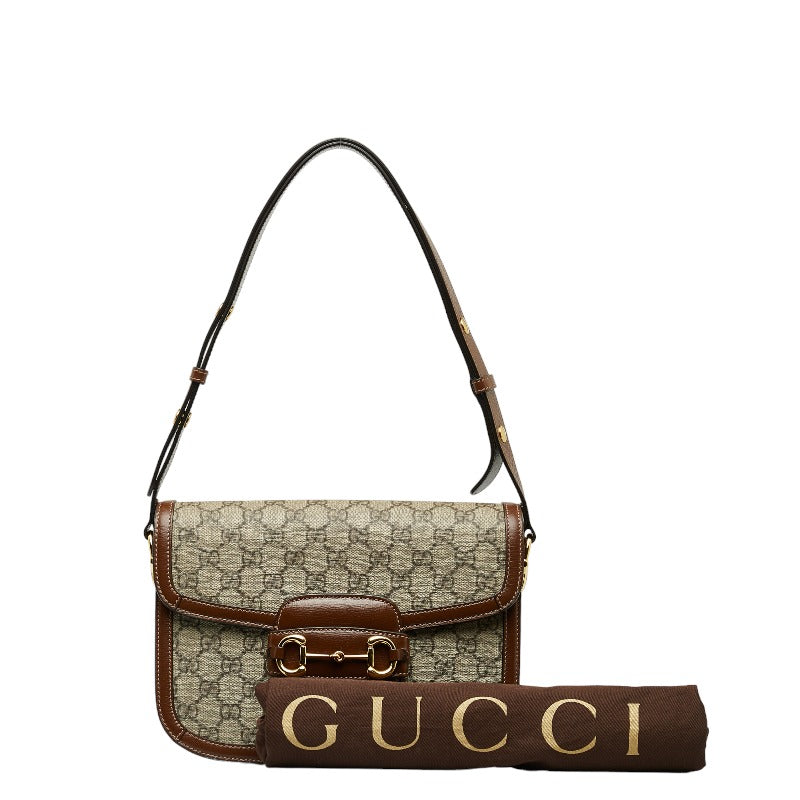 グッチ ホースビット 1955 GGスプリーム 斜め掛け ショルダーバッグ 602204 ベージュ ブラウン PVC レザー レディース GUCCI 【中古】