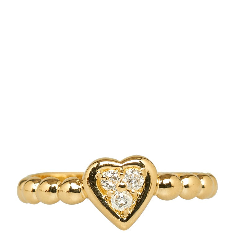 ゴールド K18YG イエローゴールド ダイヤ0.10ct ハート リング 指輪 レディース 11.5号 【中古】