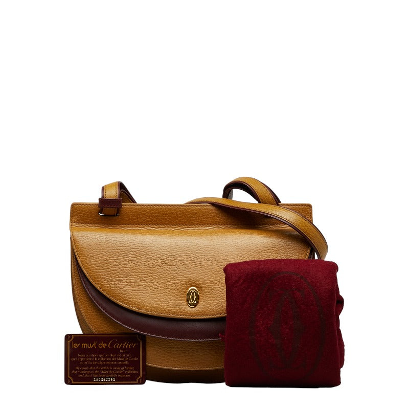 カルティエ マストライン 斜め掛け ショルダーバッグ ブラウン レザー レディース CARTIER 【中古】