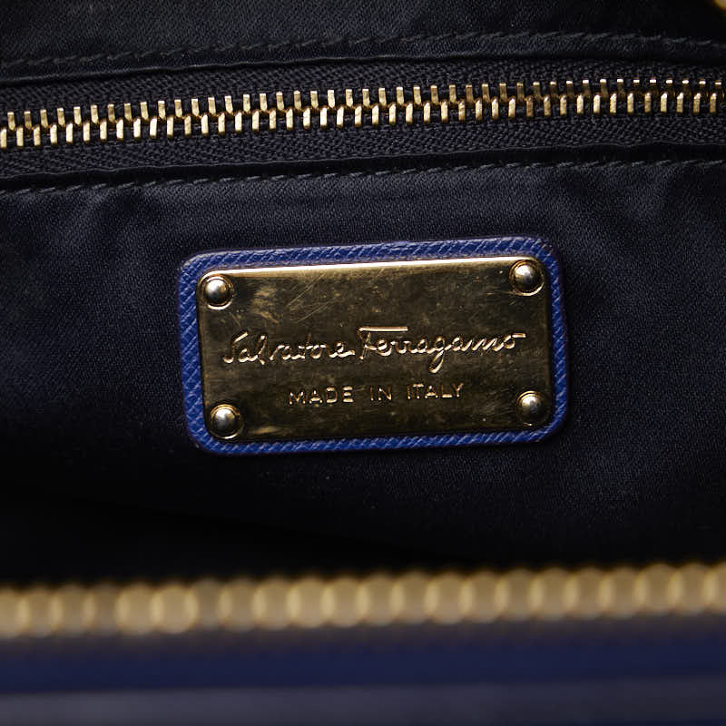 サルヴァトーレフェラガモ ガンチーニ ハンドバッグ ショルダーバッグ 2WAY GG-21F317 ブルー レザー レディース Salvatore Ferragamo 【中古】