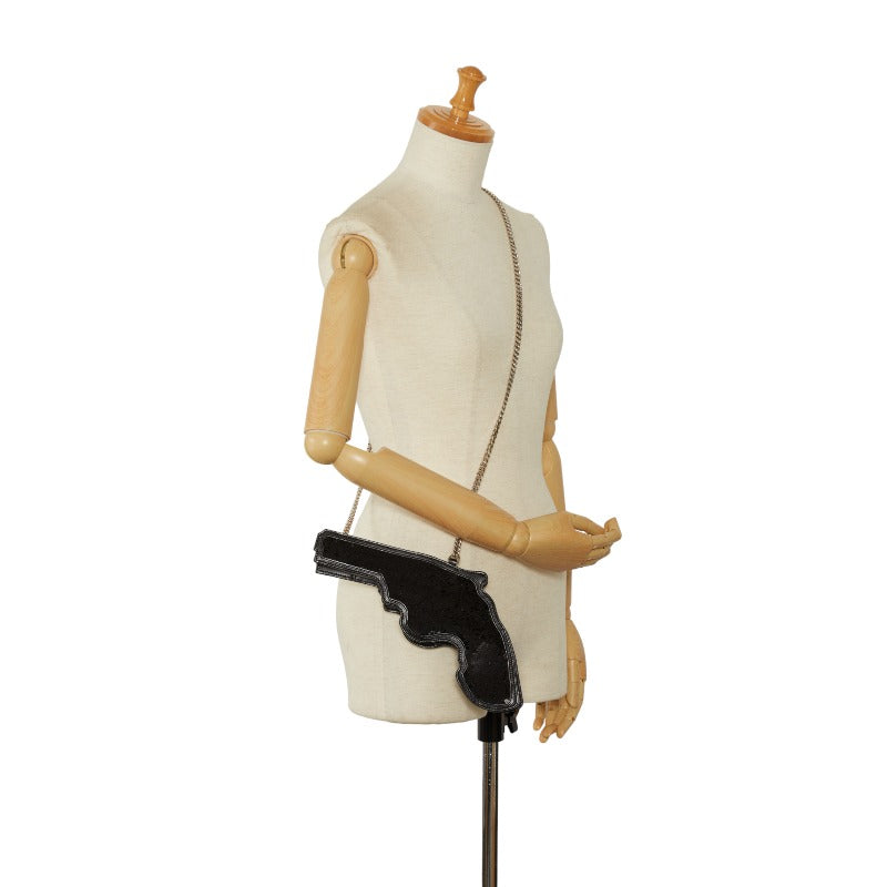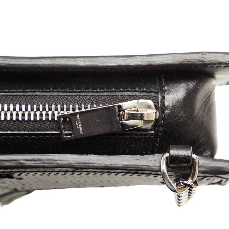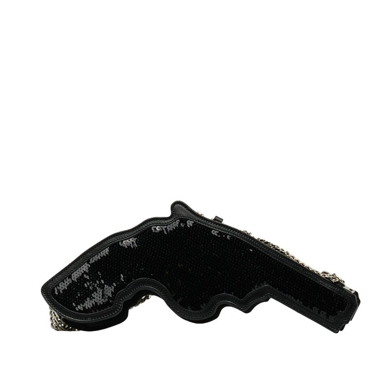 サンローラン ピストル 斜め掛け チェーン ショルダーバッグ ブラック スパンコール レザー レディース SAINT LAURENT 【中古】