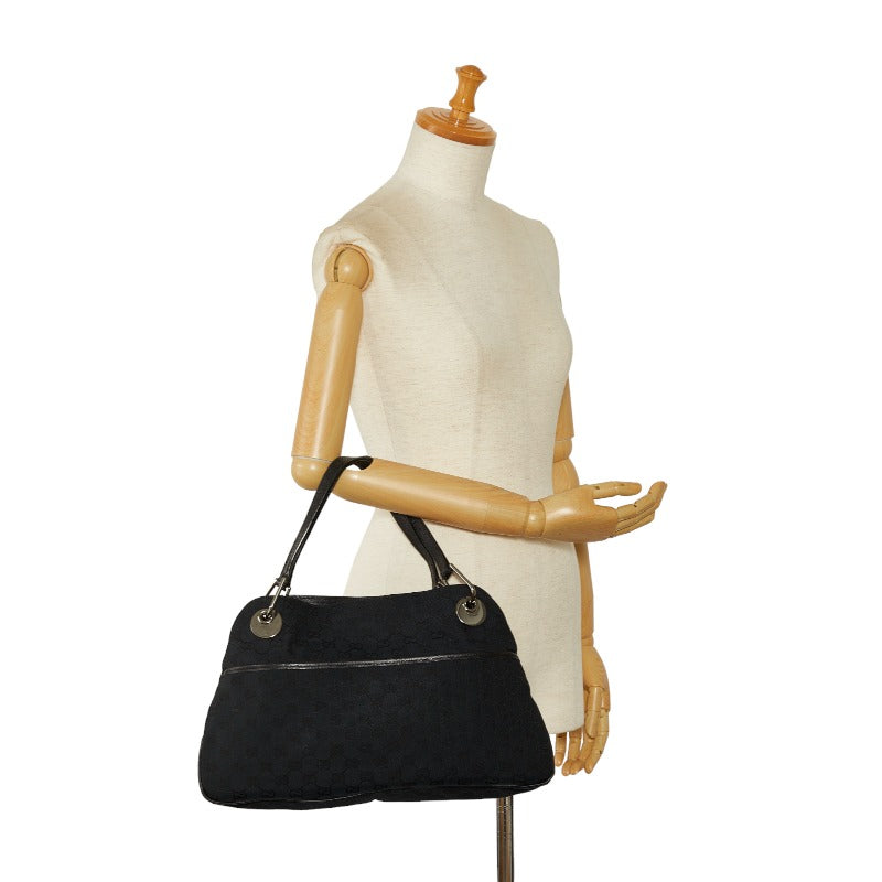 グッチ GGキャンバス ハンドバッグ トートバッグ 121023 ブラック キャンバス レザー レディース GUCCI 【中古】