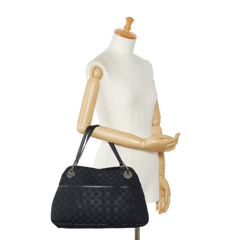 グッチ GGキャンバス ハンドバッグ トートバッグ 121023 ブラック キャンバス レザー レディース GUCCI 【中古】