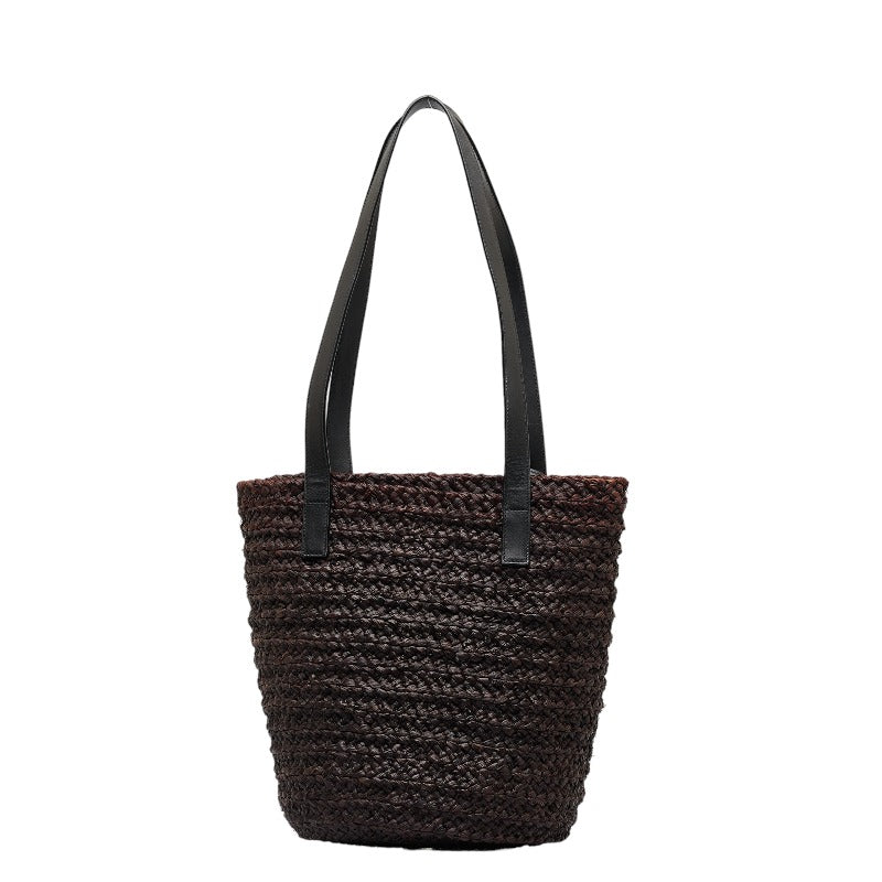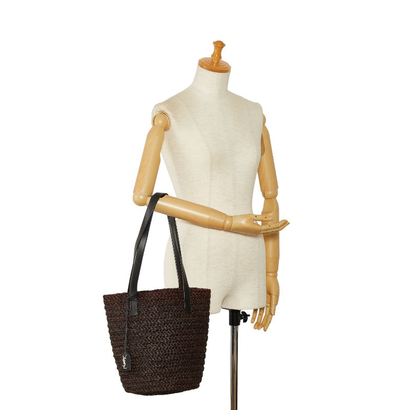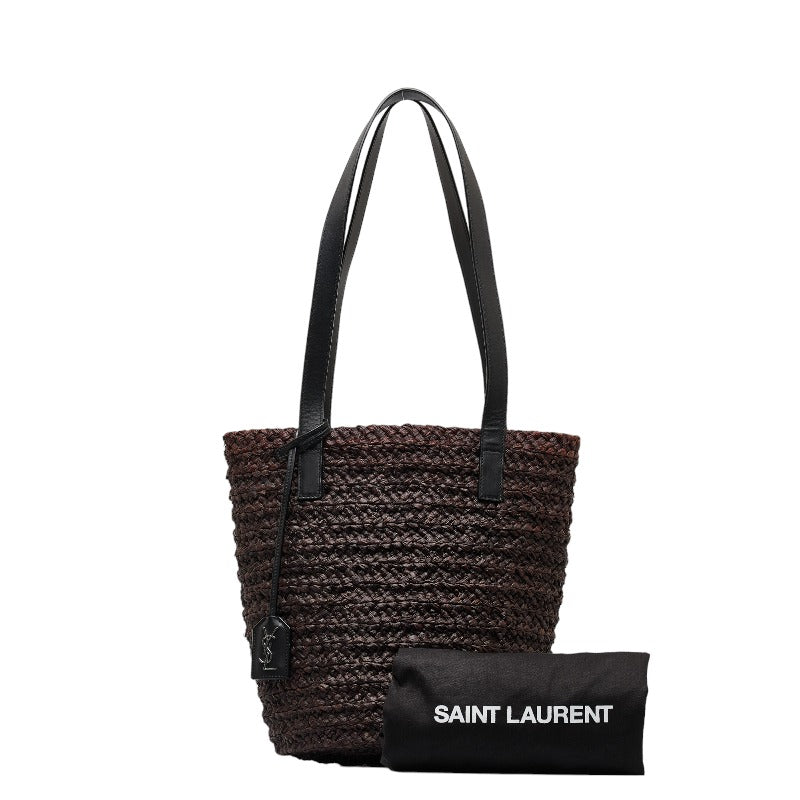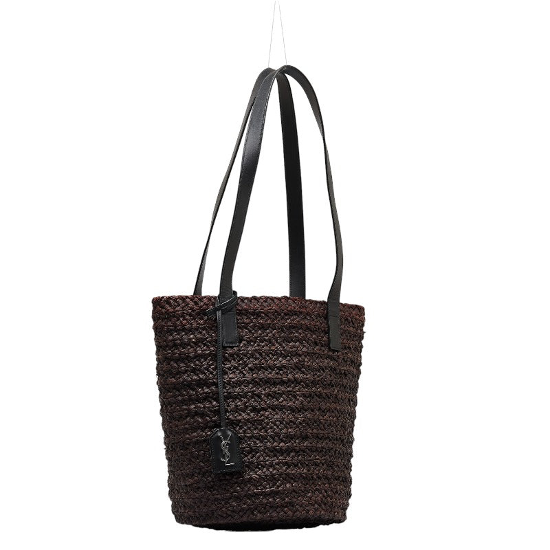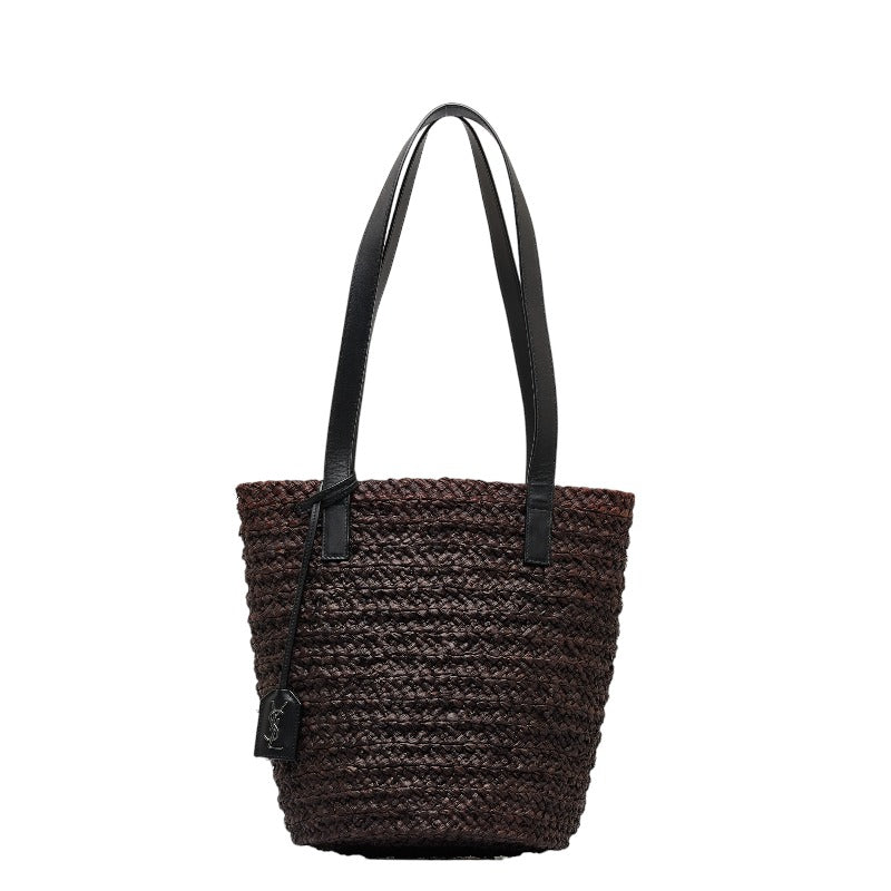 サンローラン パニエ スモール ハンドバッグ バケツ 579518 ブラウン ブラック ラフィア レディース SAINT LAURENT 【中古】