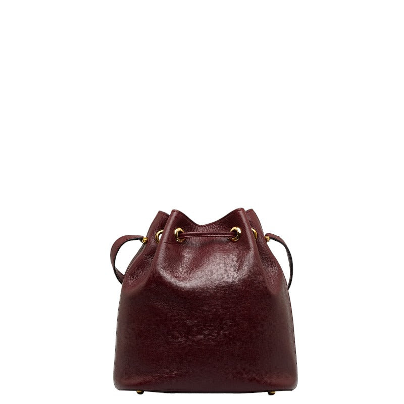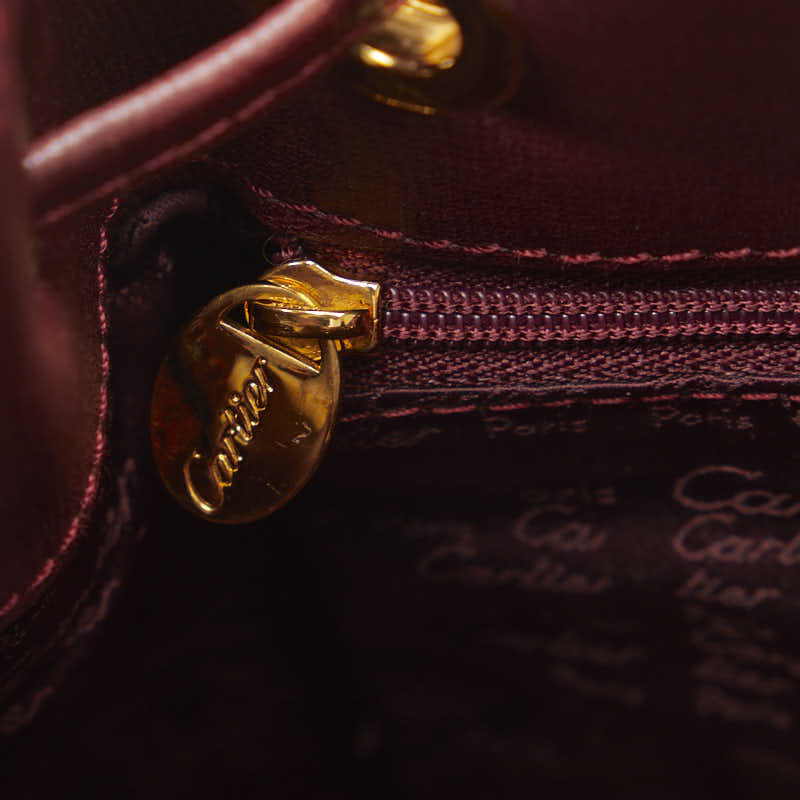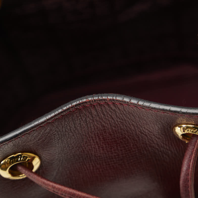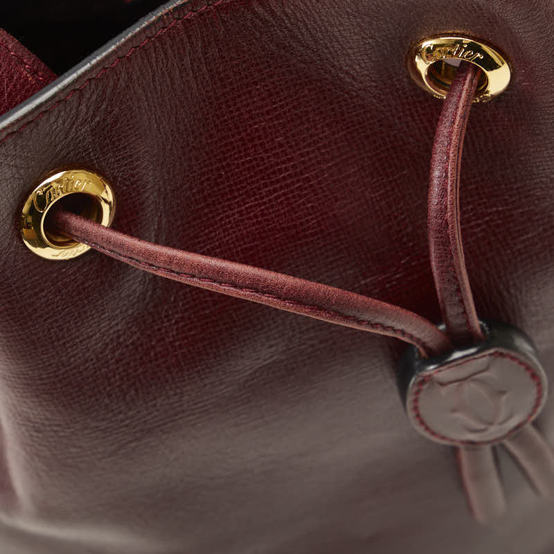カルティエ マストライン 巾着 ショルダーバッグ ワインレッド レザー レディース CARTIER 【中古】