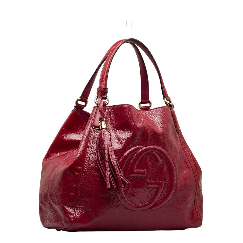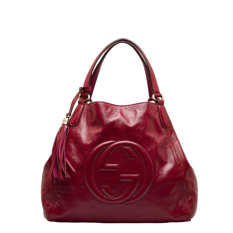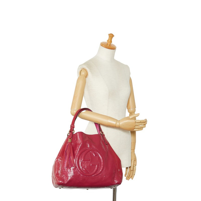 グッチ インターロッキングG ソーホー セラリウス タッセル ハンドバッグ ショルダーバッグ 282309 ピンク パテントレザー レディース GUCCI 【中古】