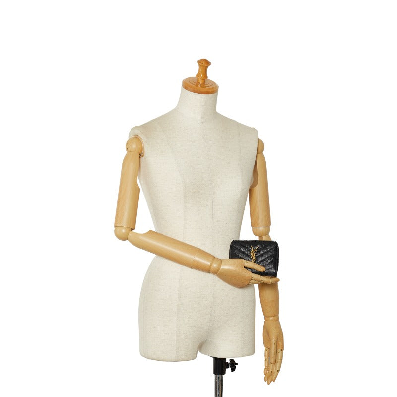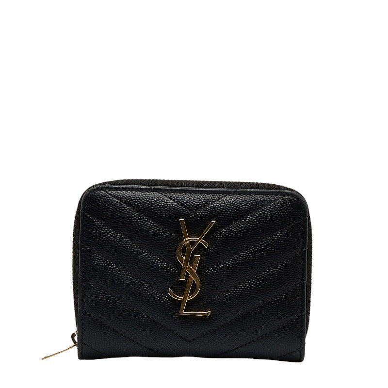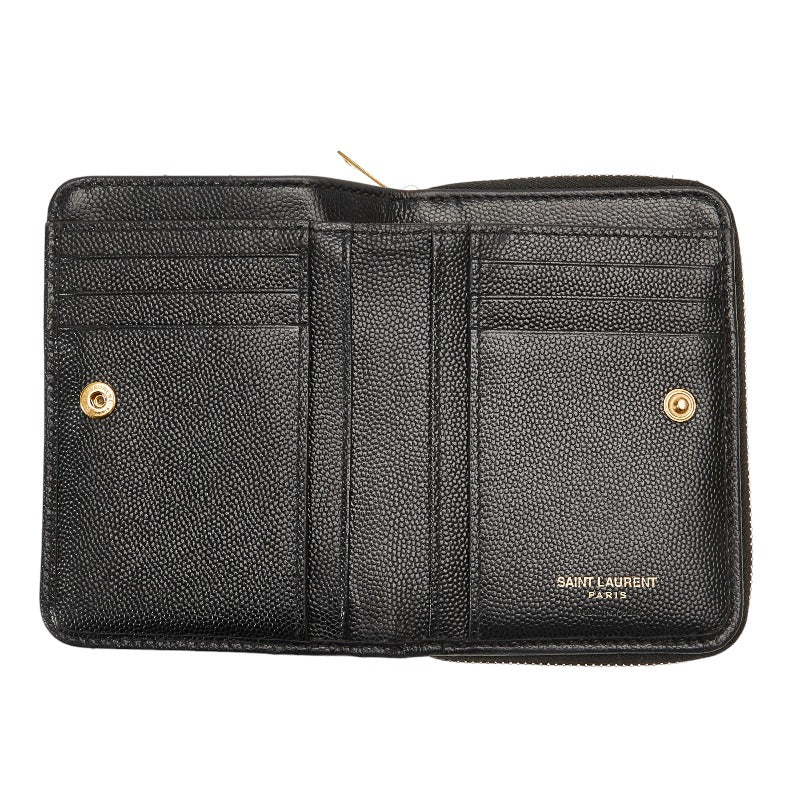 サンローラン YSLロゴ Vステッチ キルティング ゴールド金具 二つ折り財布 GUE403723 ブラック レザー レディース SAINT LAURENT 【中古】