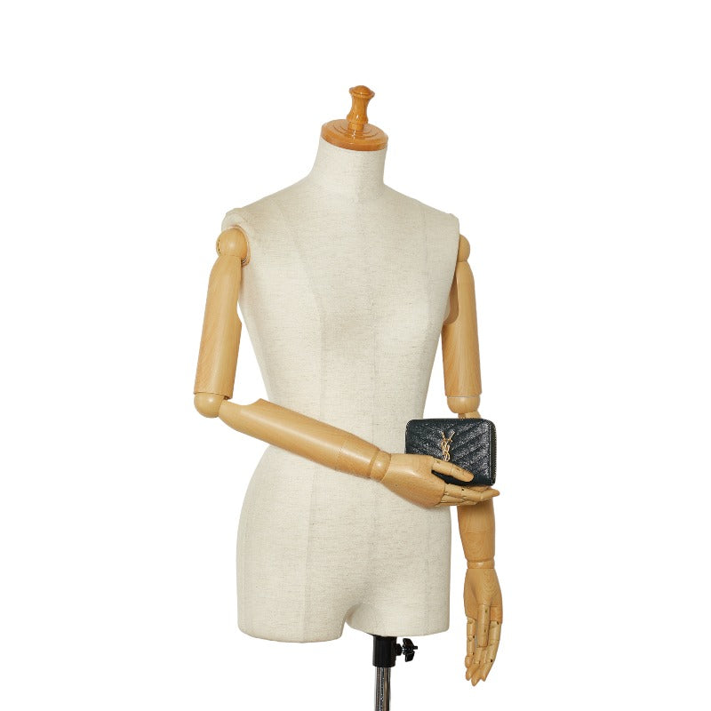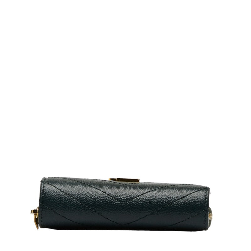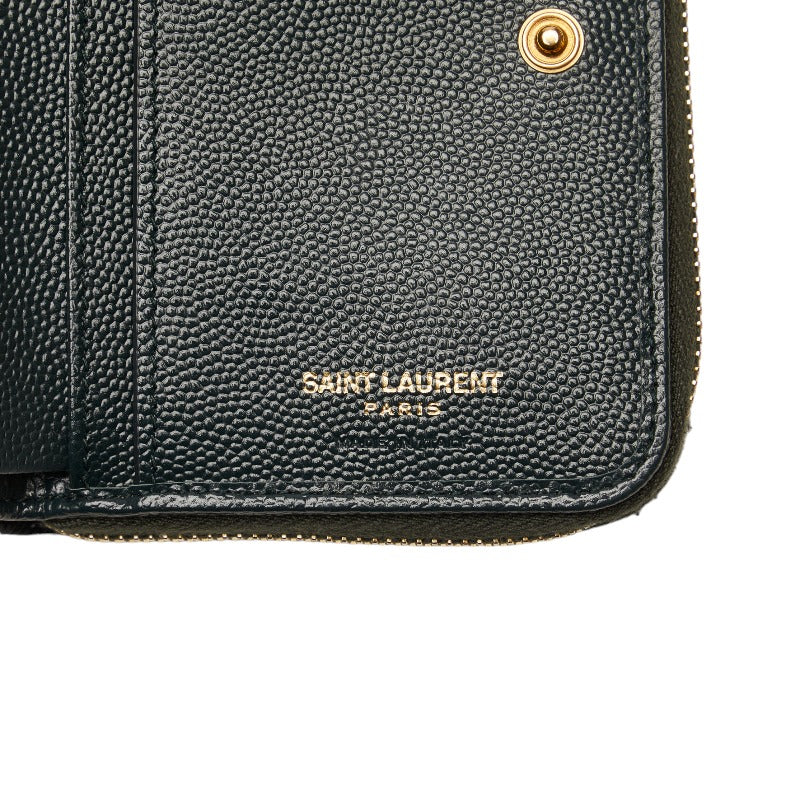 サンローラン YSLロゴ Vステッチ キルティング ゴールド金具 二つ折り財布 GUE403723 グリーン レザー レディース SAINT LAURENT 【中古】