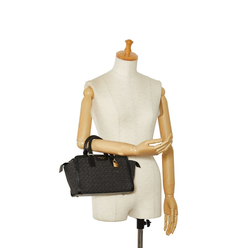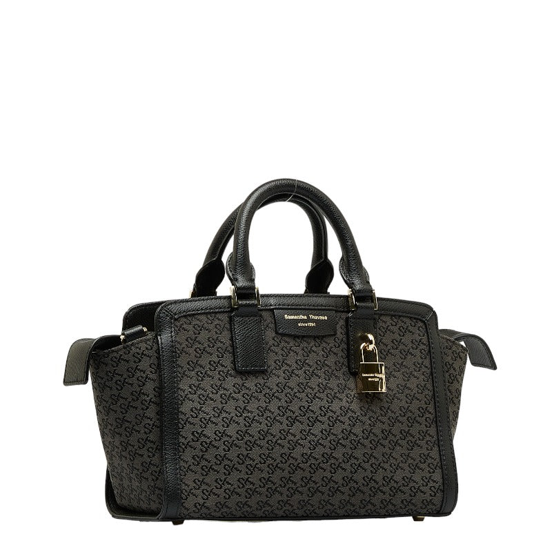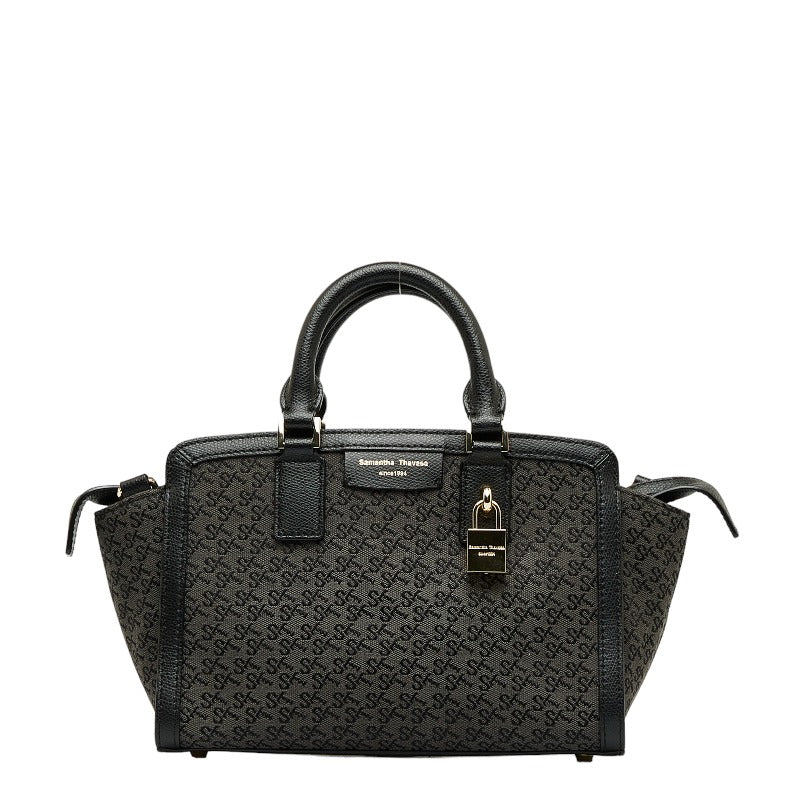 サマンサタバサ モノグラム ハンドバッグ ブラック キャンバス レザー レディース Samantha Thavasa 【中古】