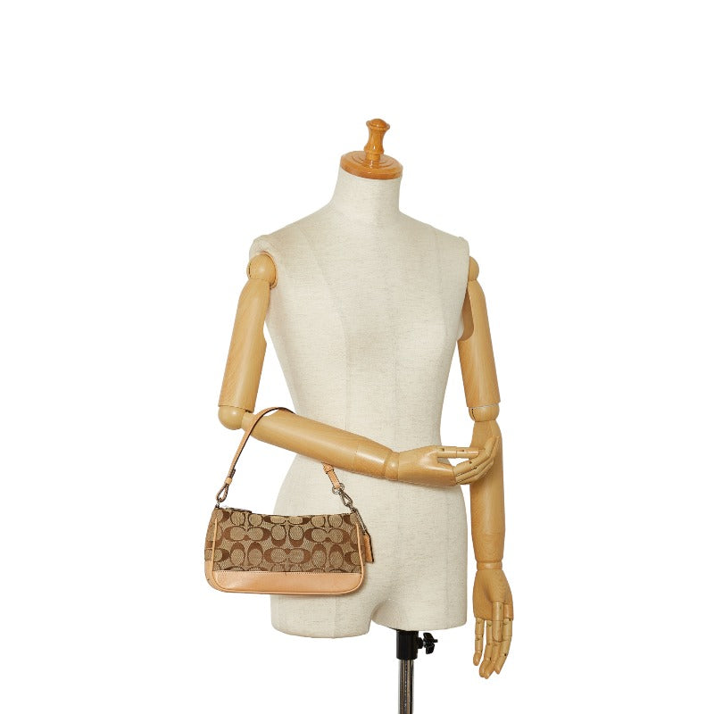 コーチ シグネチャー ミニハンドバッグ アクセサリーポーチ 6094 ベージュ キャンバス レザー レディース COACH 【中古】