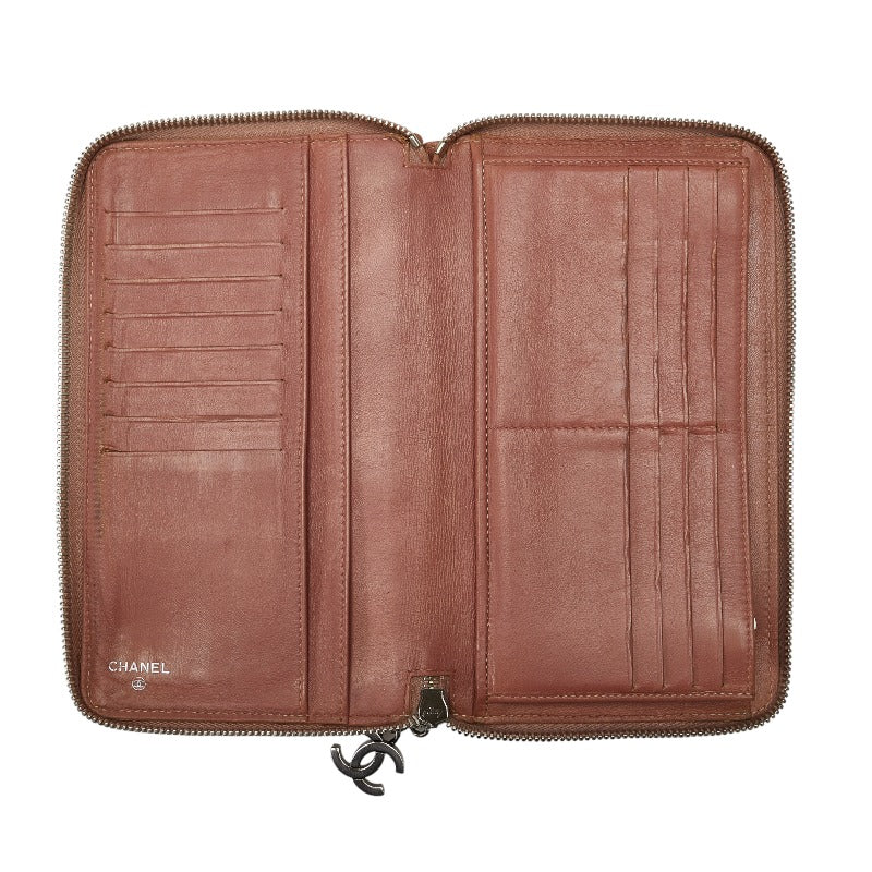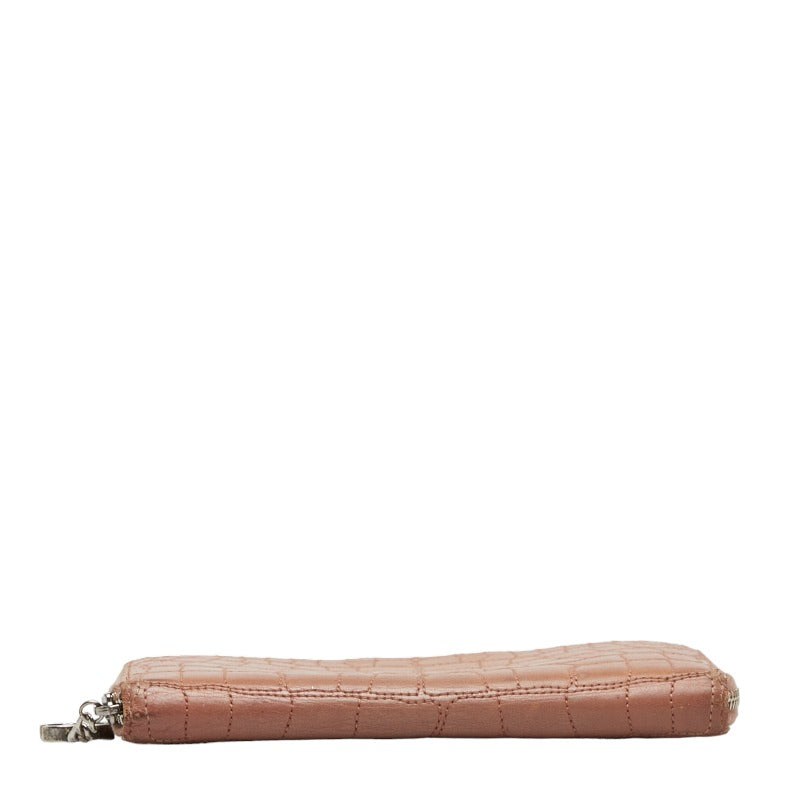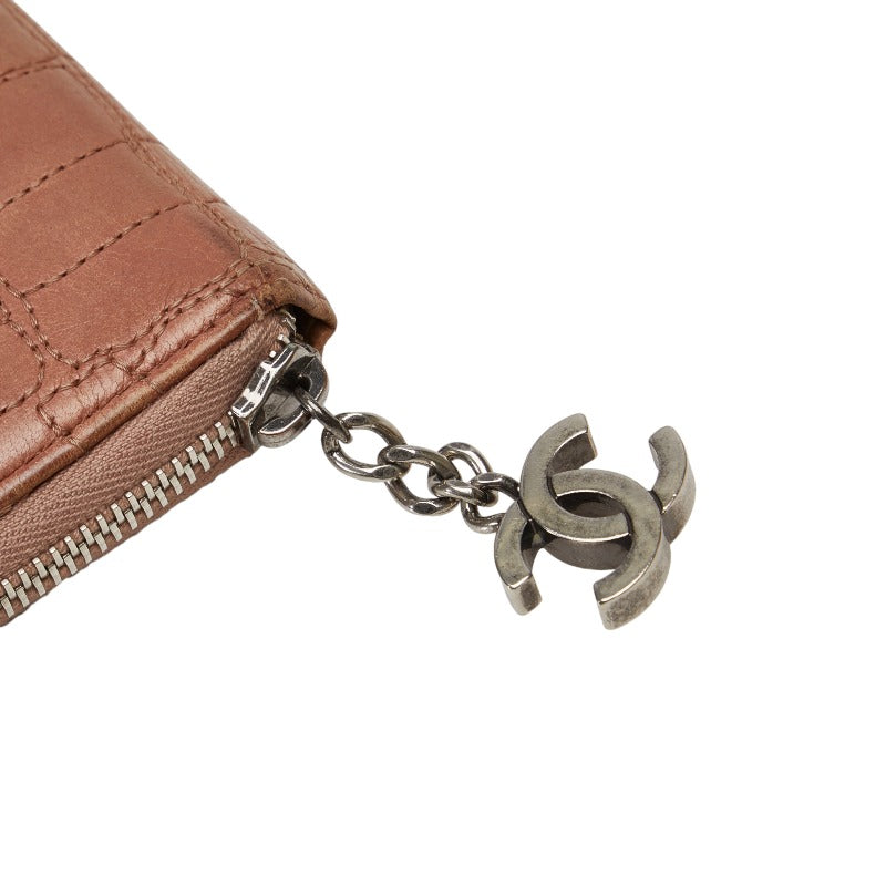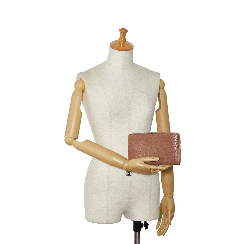 シャネル クロコダイル風 ラウンドファスナー 長財布 ピンク レザー レディース CHANEL 【中古】