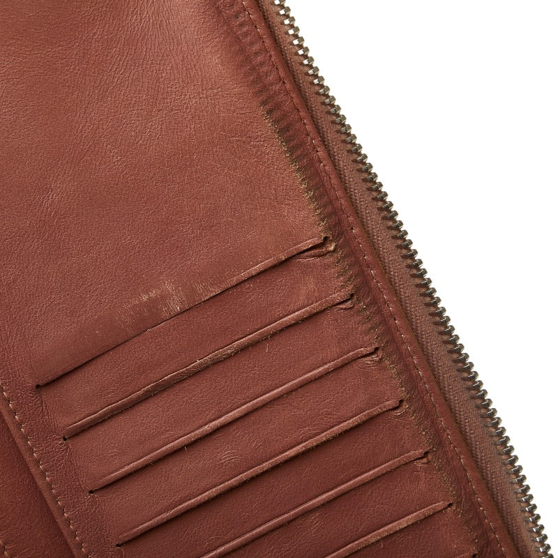 外側⇒全体的にスレ・変色・フチに黒ずみ・薄汚れ サイド⇒ファスナーテープに薄汚れ・スレ、レザー部分にフチスレ・角スレ 金具⇒小傷・クスミ 内側⇒全体的にスレ・薄汚れ、小銭入れ内に薄汚れ、ファスナーの汚れ移り |