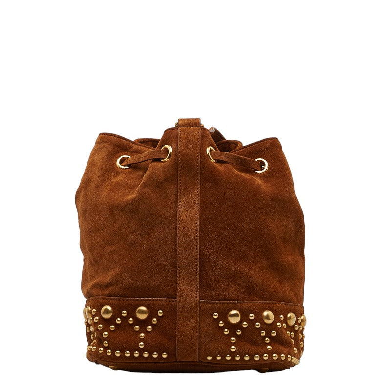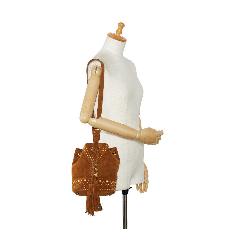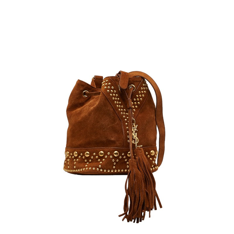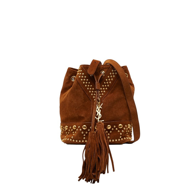 サンローラン YSL スタッズ ショルダーバッグ ブラウン スウェード レディース SAINT LAURENT 【中古】