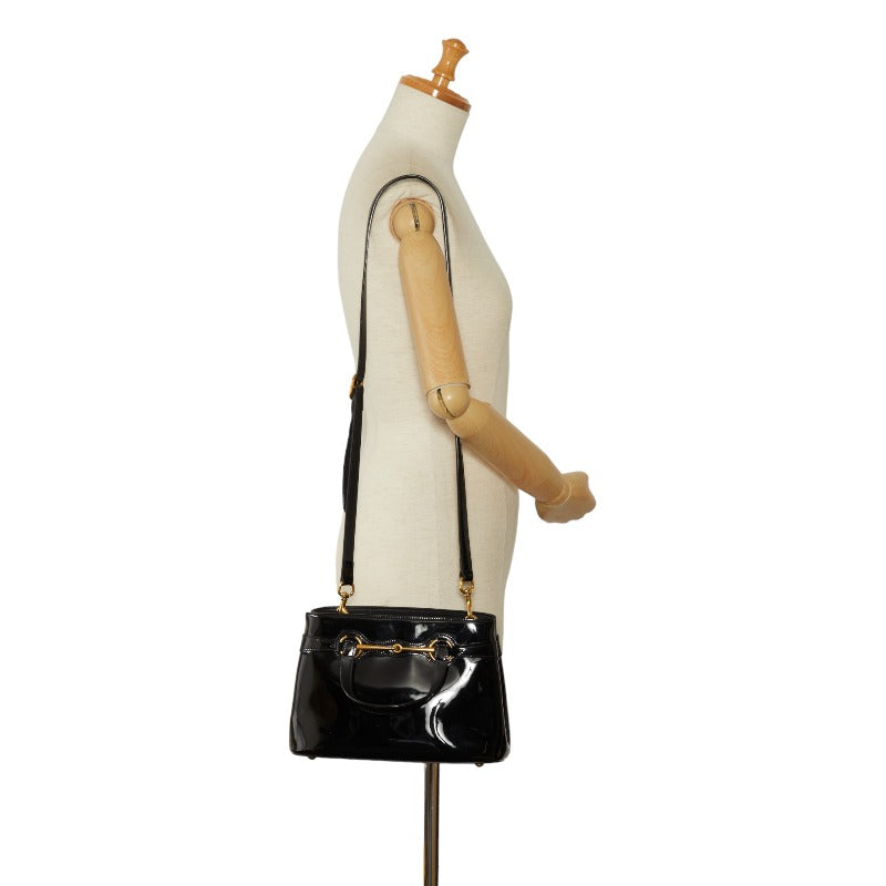 グッチ ホースビット ハンドバッグ ショルダーバッグ 2WAY 371925 ブラック パテントレザー レディース GUCCI 【中古】