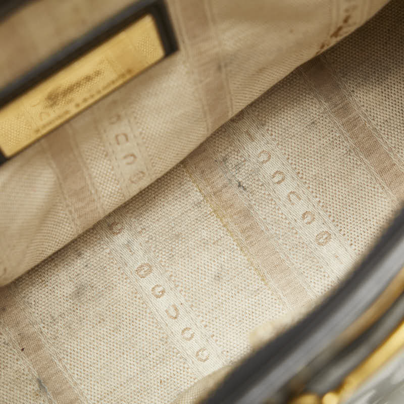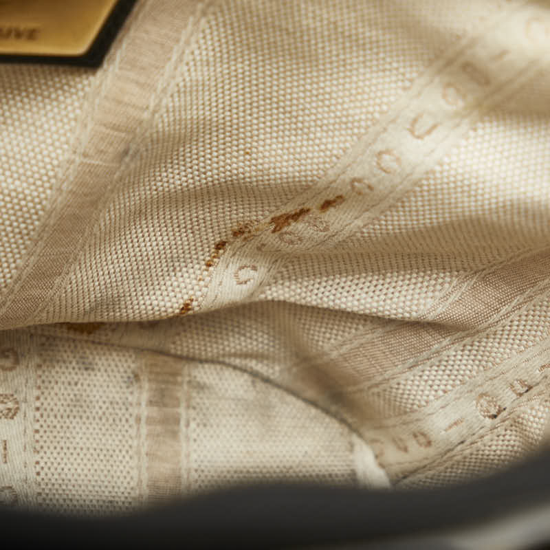 外側⇒僅かにスレ・線キズ・僅かに汚れ・僅かにハンドルあと 底面⇒僅かに角スレ ハンドル⇒レザー部分にスレ ショルダー⇒金具跡・金具の色移り 金具⇒小傷・メッキはがれ 開閉口⇒フチスレ 内側⇒全体的に薄汚れ・ポケット型崩れ・黄ばみ・ノリ染み |
