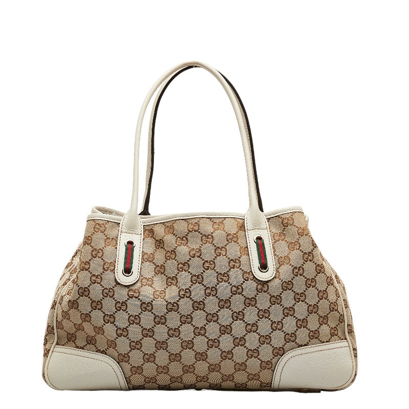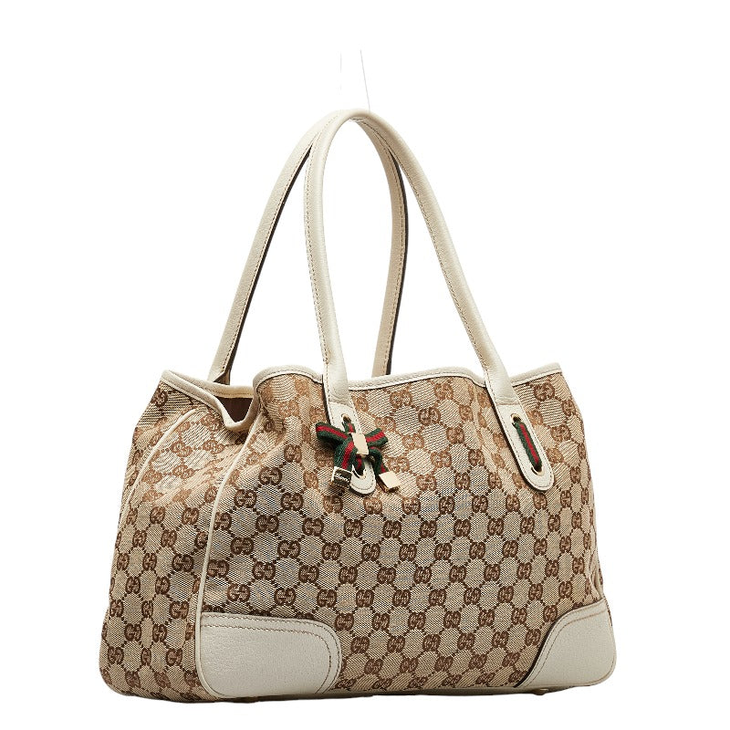 グッチ GGキャンバス プリンシー リボン ショルダーバッグ 163805 ベージュ ホワイト キャンバス レザー レディース GUCCI 【中古】