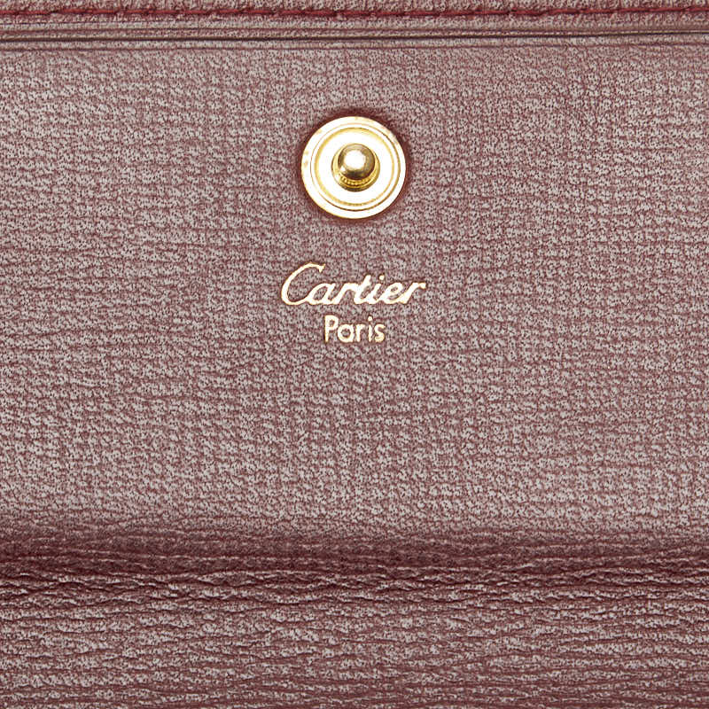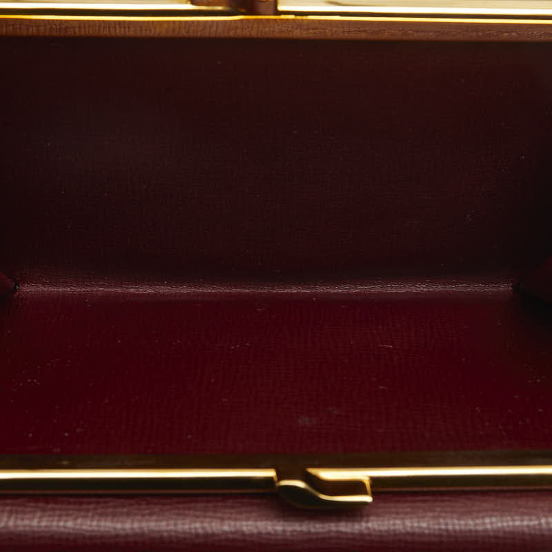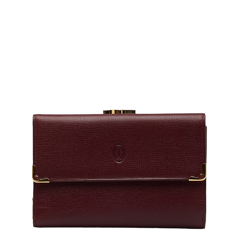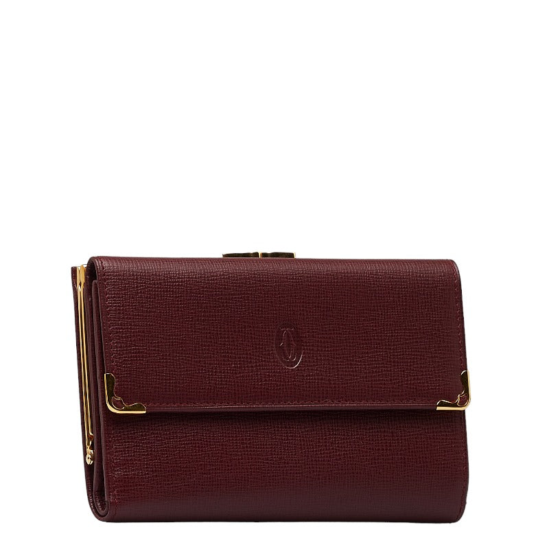 カルティエ マストライン がま口 ゴールド金具 三つ折り財布 ボルドー ワインレッド レザー レディース CARTIER 【中古】