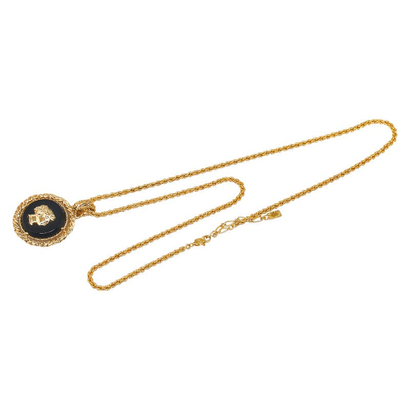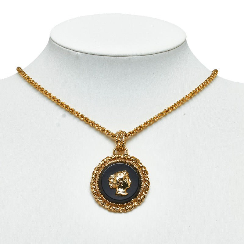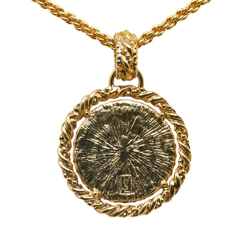 サンローラン エリザベスコイン メダル YSLロゴ ネックレス ペンダント ゴールド ブラック メッキ プラスチック レディース SAINT LAURENT 【中古】
