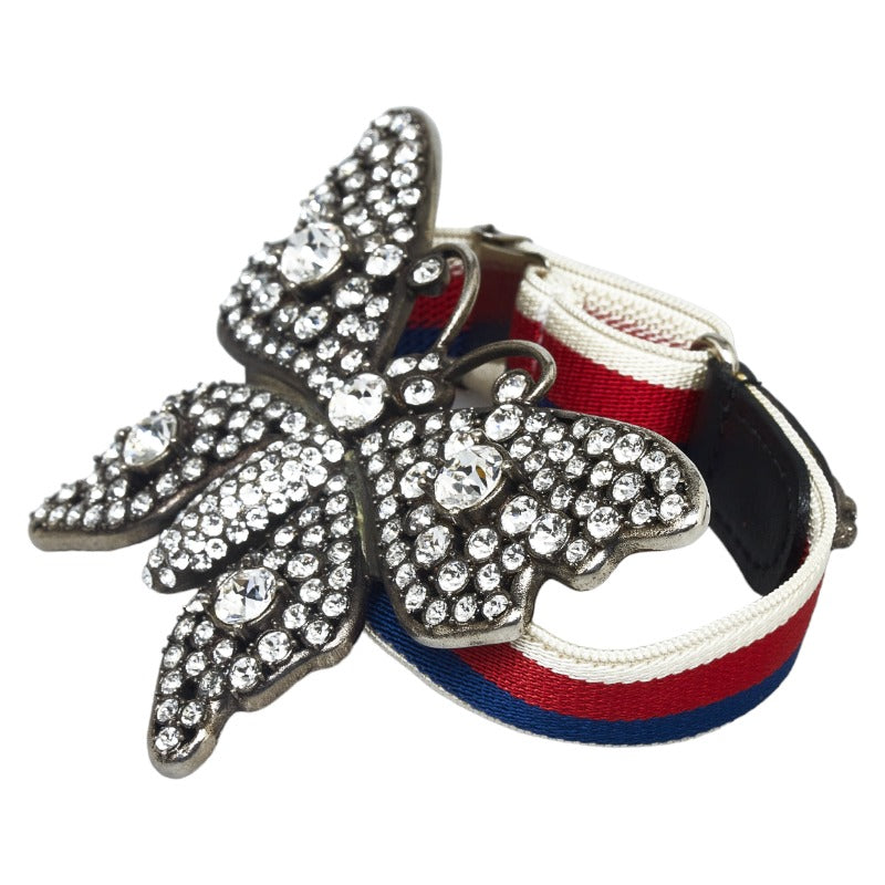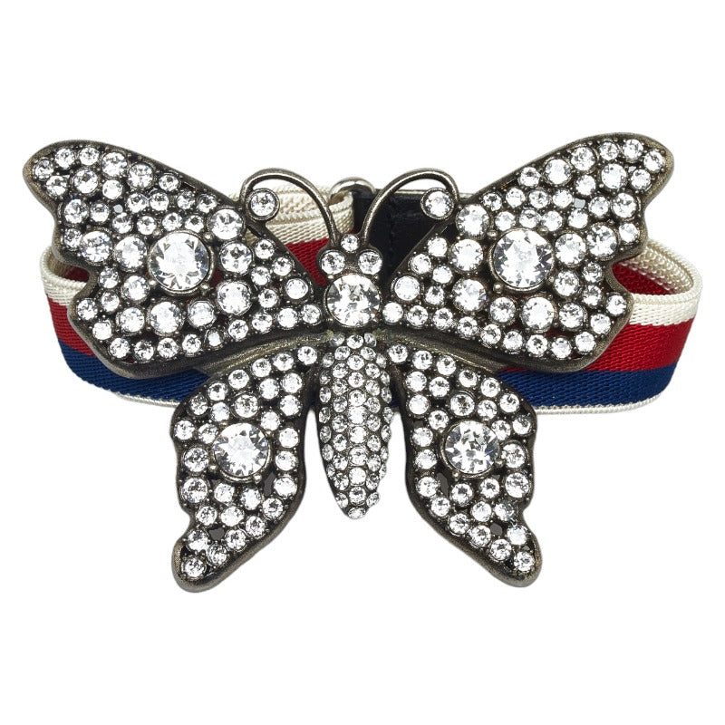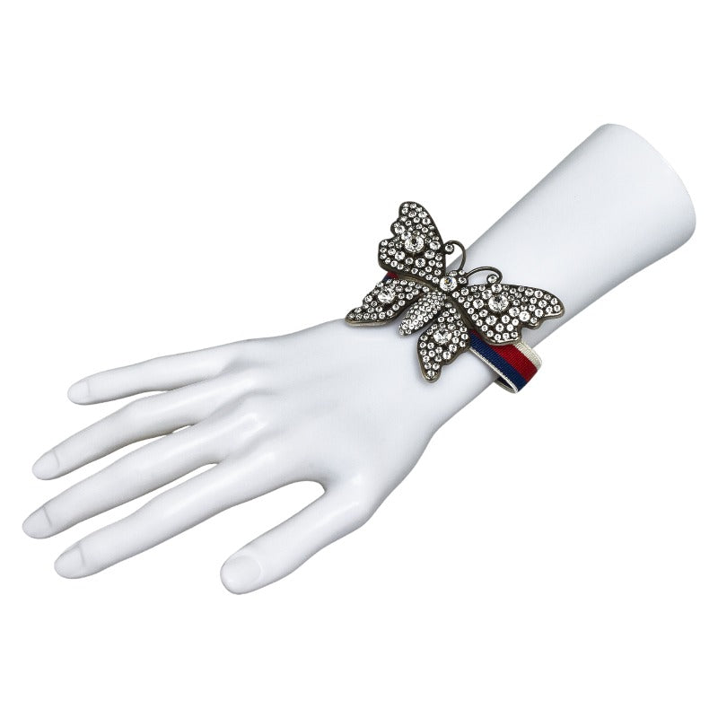 グッチ バタフライ ラインストーン ブレスレット シルバー メタル レディース GUCCI 【中古】