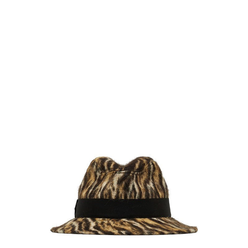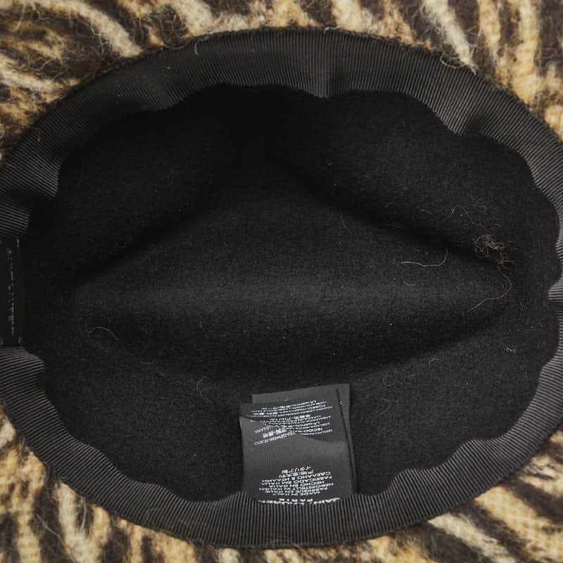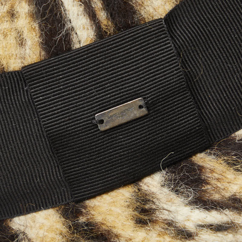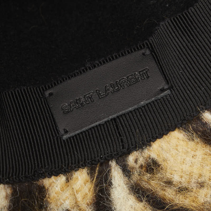 サンローラン アニマル プリント フェドラ レオパード 中折れハット ベージュ ブラック ウール レディース SAINT LAURENT 【中古】