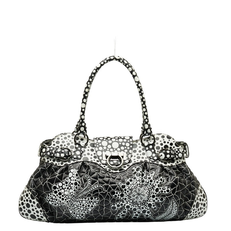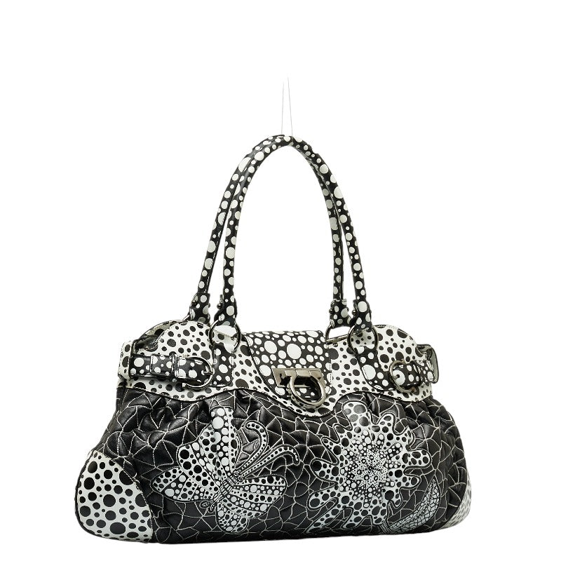 サルヴァトーレフェラガモ マリッサ 草間彌生コラボ ハンドバッグ AB-21A439 ブラック ホワイト レザー レディース Salvatore Ferragamo 【中古】