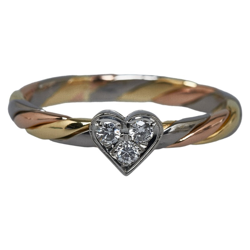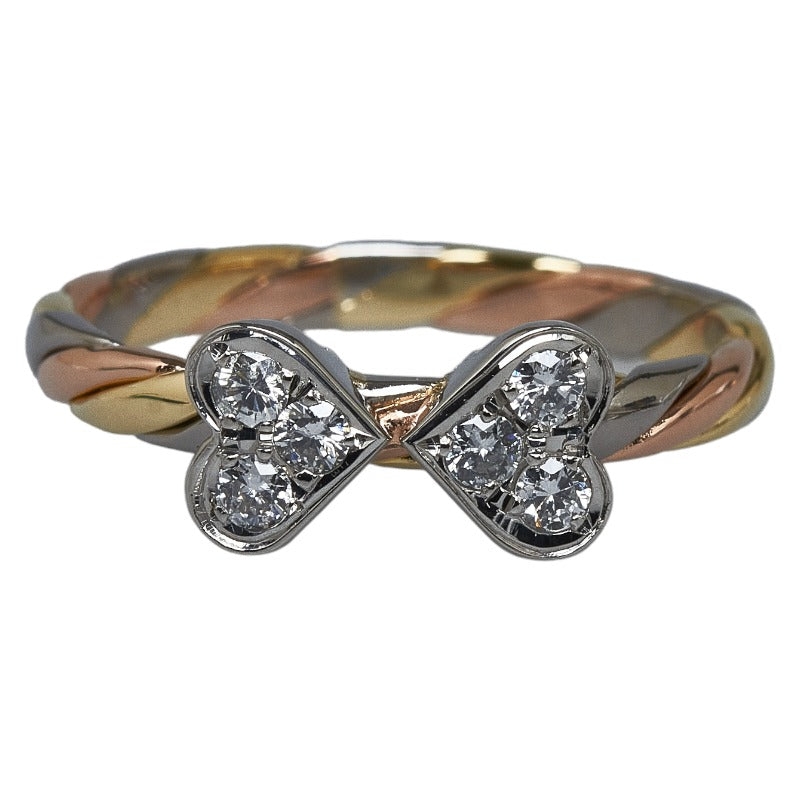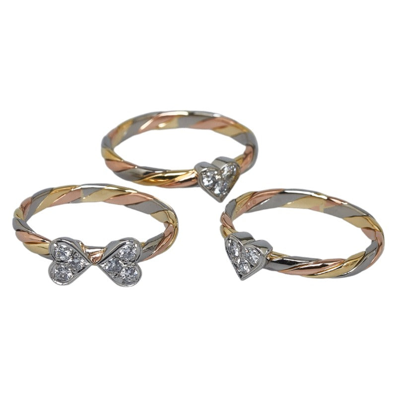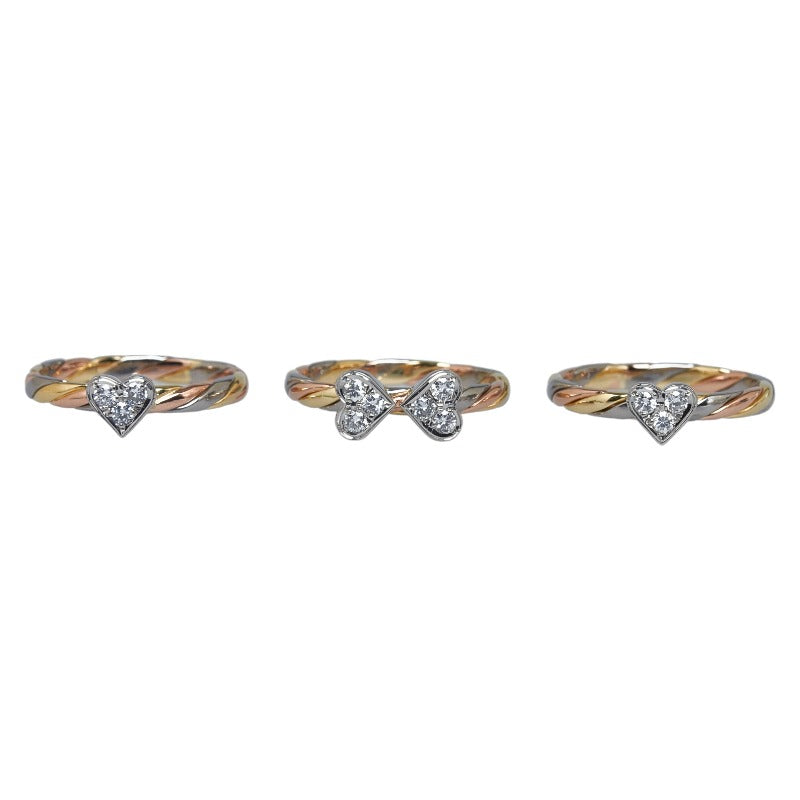 ゴールド シルバー K18 ゴールド Pt900 プラチナ コンビ ダイヤ0.33ct スリーカラー 3本セット ハート クローバーモチーフ リング 指輪 レディース 11号 【中古】
