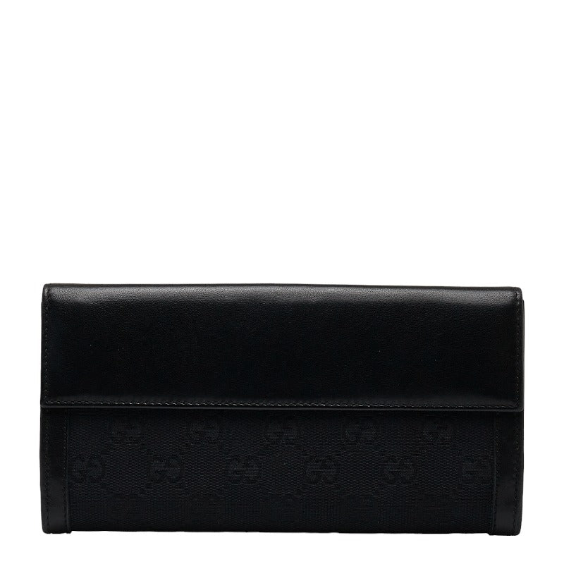 グッチ GGキャンバス 長財布 159641 ブラック キャンバス レザー レディース GUCCI 【中古】