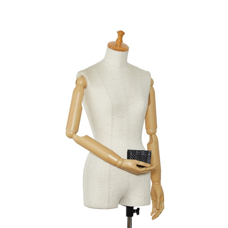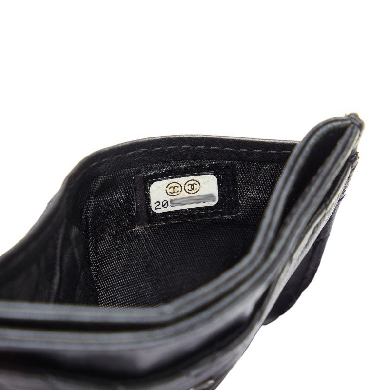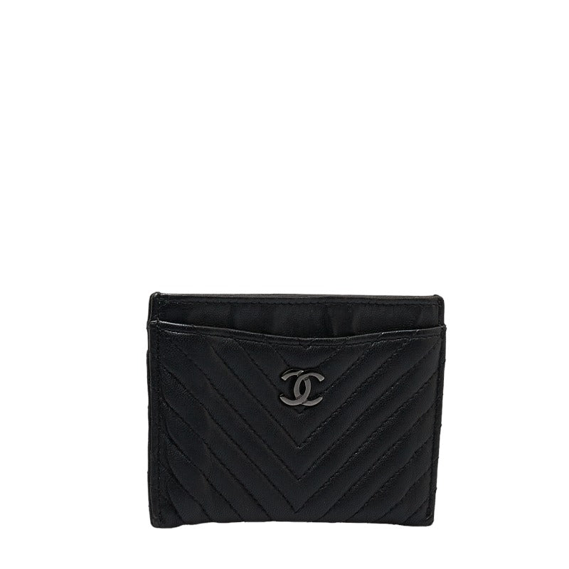 シャネル Vステッチ カードケース ブラック ラムスキン レディース CHANEL 【中古】