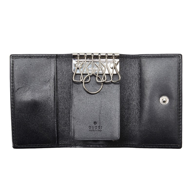 グッチ エンブレム 6連 キーケース 190418 ブラック ナイロン レザー レディース GUCCI 【中古】