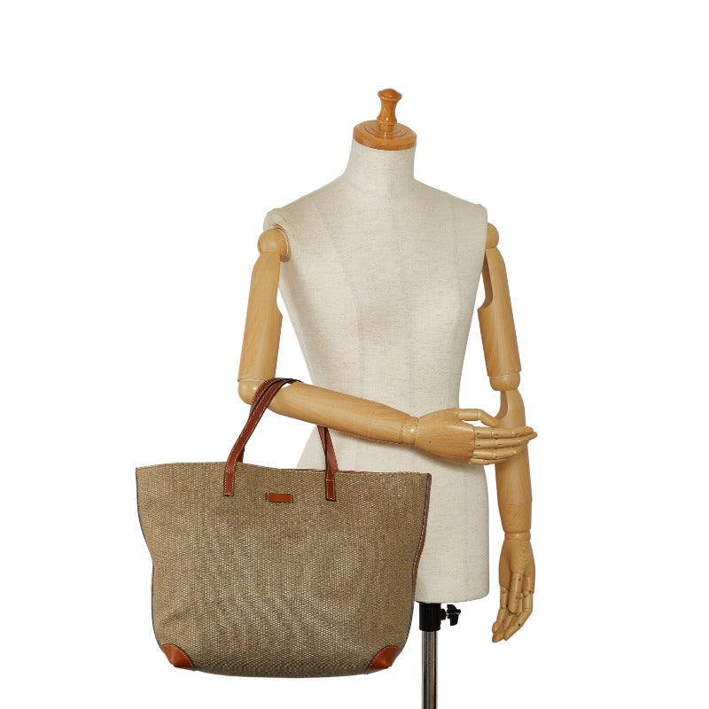 グッチ トートバッグ 309554 ベージュ レザー ラフィア レディース GUCCI 【中古】
