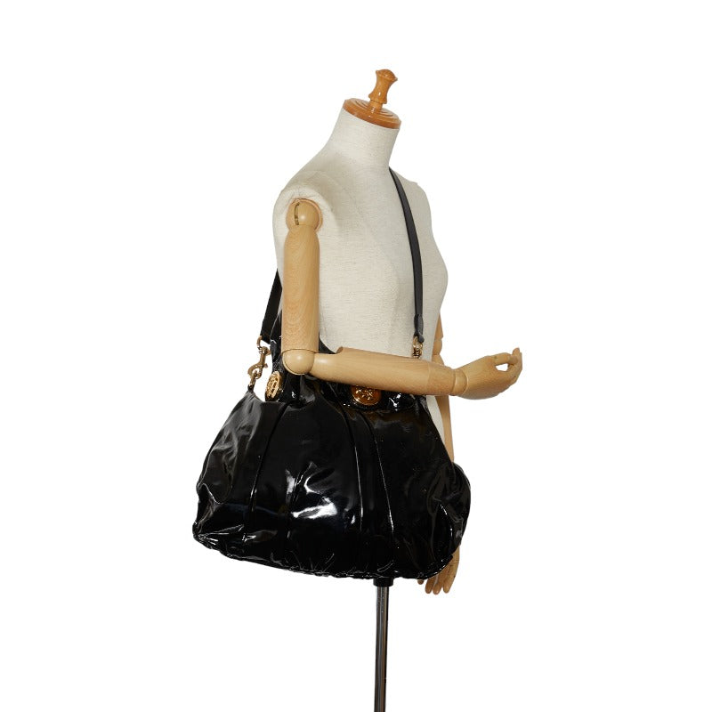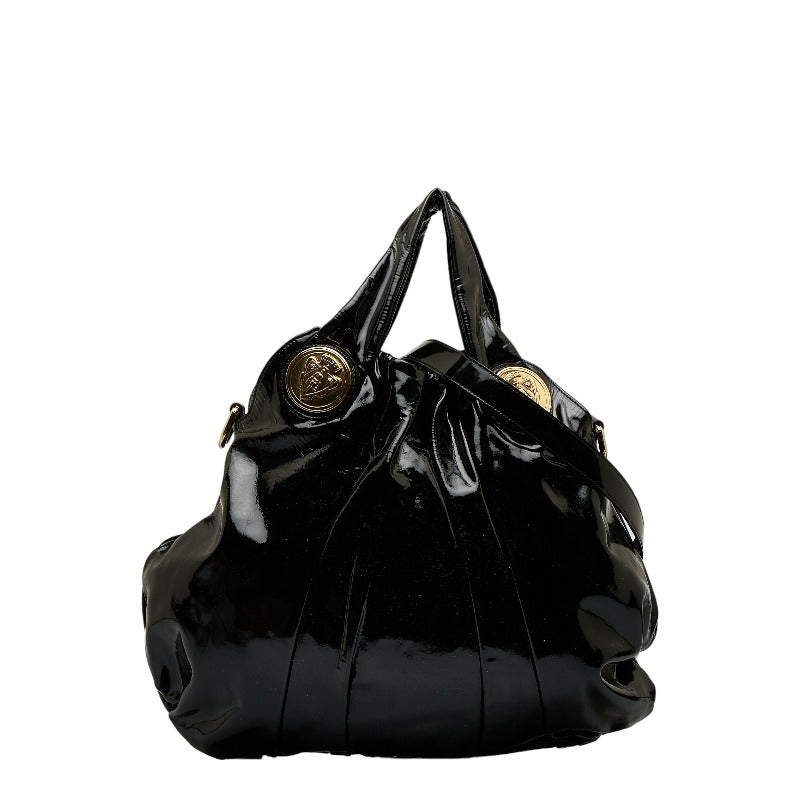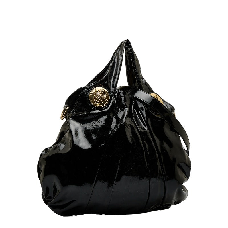 グッチ ヒステリア ハンドバッグ ショルダーバッグ 2WAY 197016 ブラック エナメル レザー レディース GUCCI 【中古】