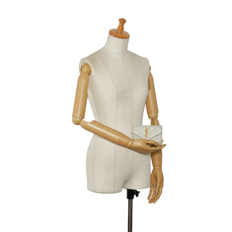 サンローラン モノグラム YSL カードケース 名刺入れ ホワイト レザー レディース SAINT LAURENT 【中古】