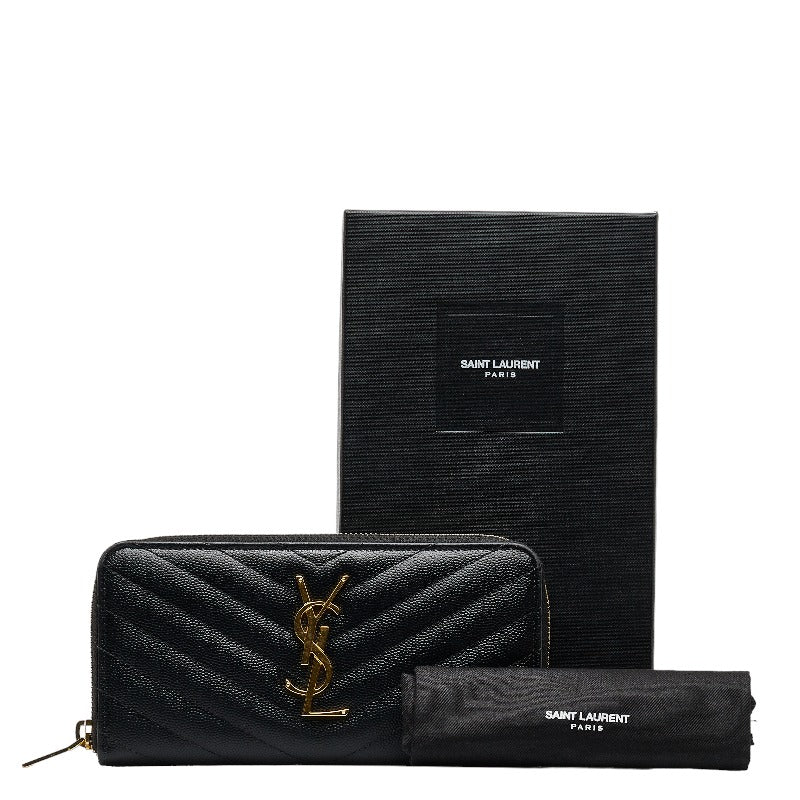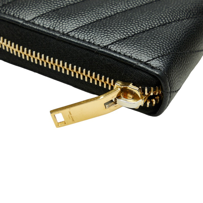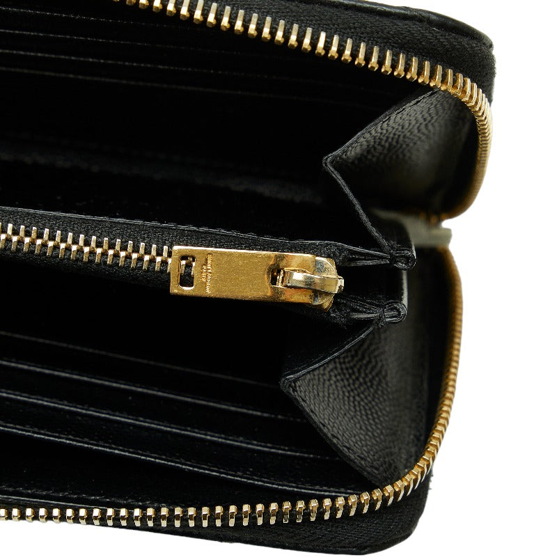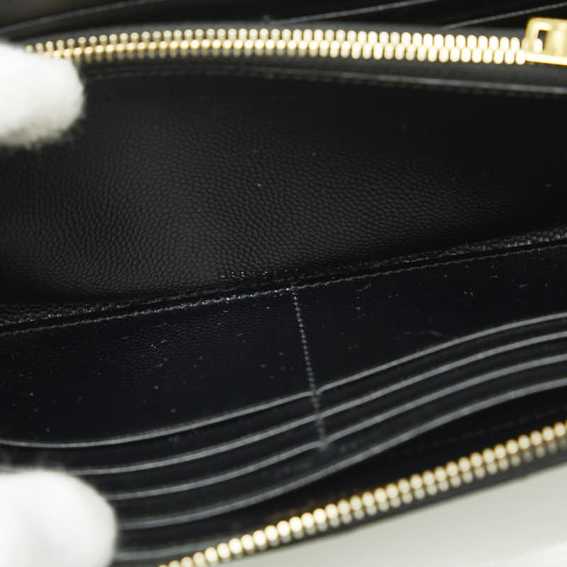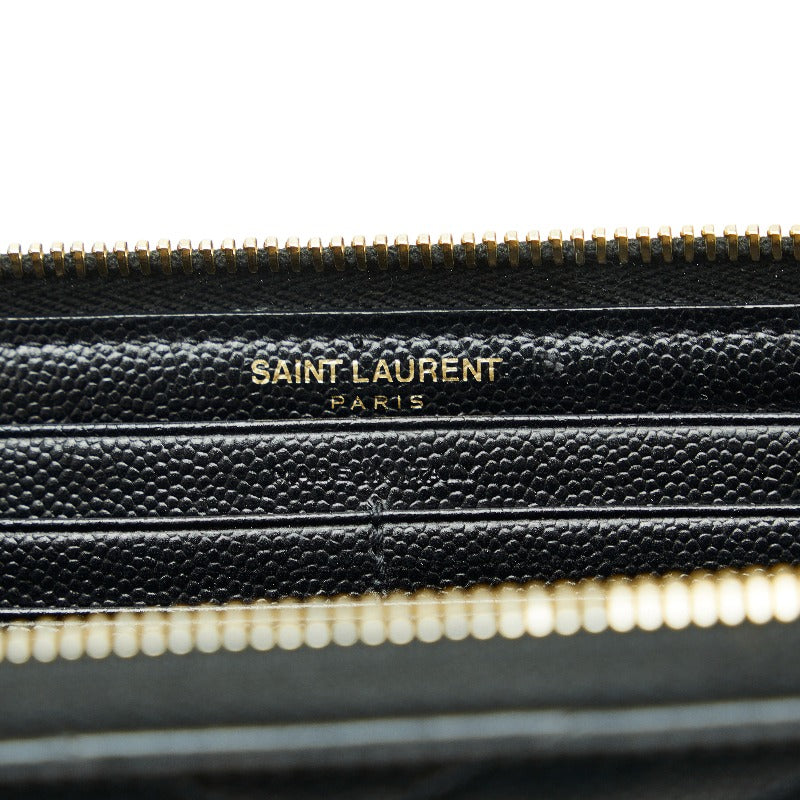 サンローラン モノグラム カサンドラ キルティング ラウンドファスナー 長財布 358094 ブラック キャビアスキン レディース SAINT LAURENT 【中古】