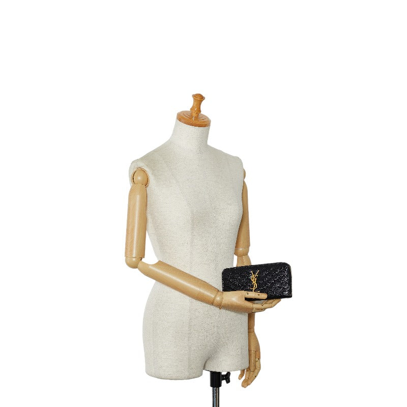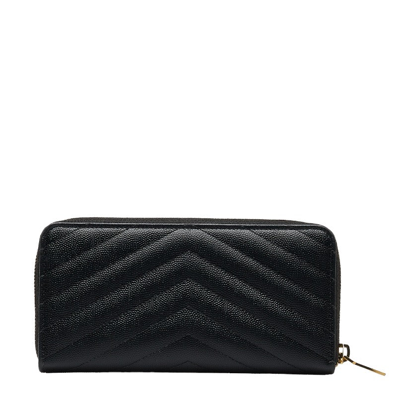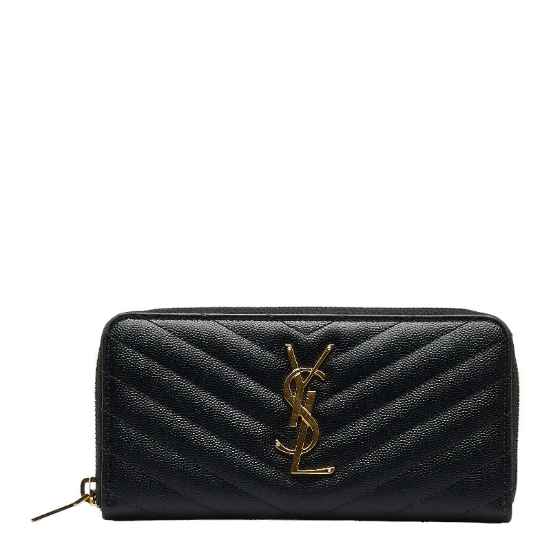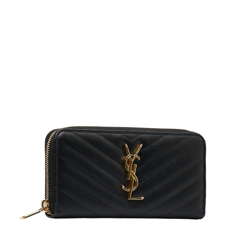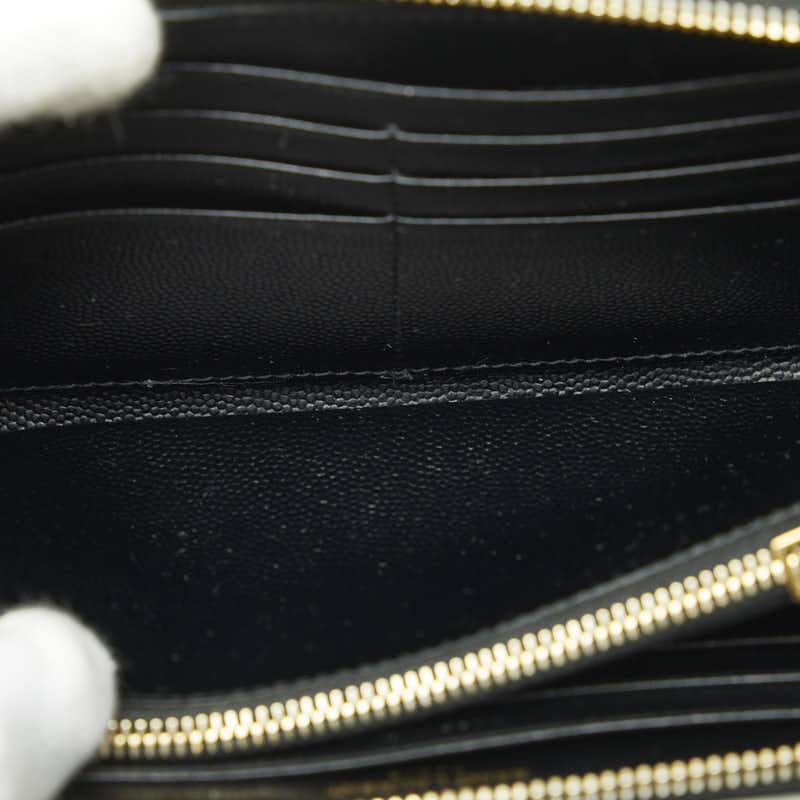 サンローラン モノグラム カサンドラ キルティング ラウンドファスナー 長財布 358094 ブラック キャビアスキン レディース SAINT LAURENT 【中古】