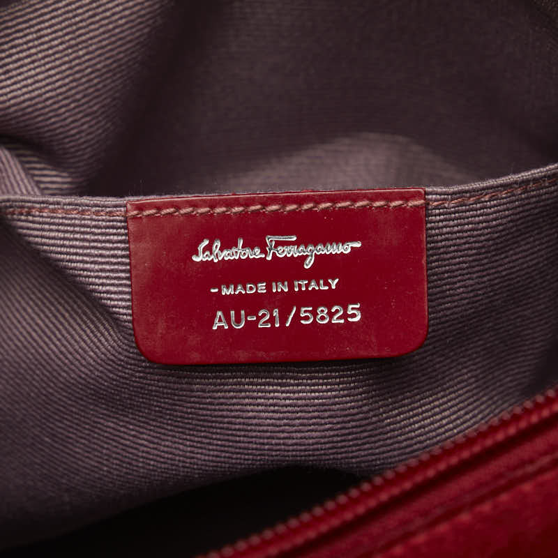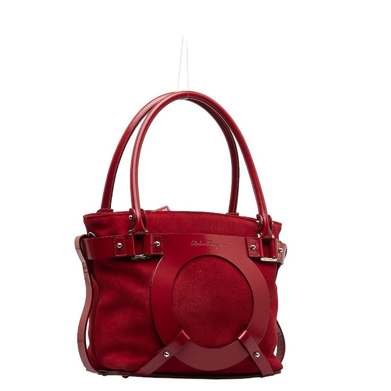 サルヴァトーレフェラガモ ガンチーニ ハンドバッグ AU-21 5825 レッド スウェード レザー レディース Salvatore Ferragamo 【中古】