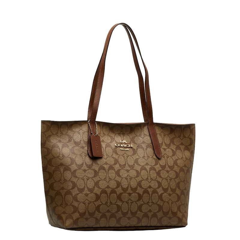 コーチ シグネチャー トートバッグ F67108 ベージュ ブラウン PVC レザー レディース COACH 【中古】
