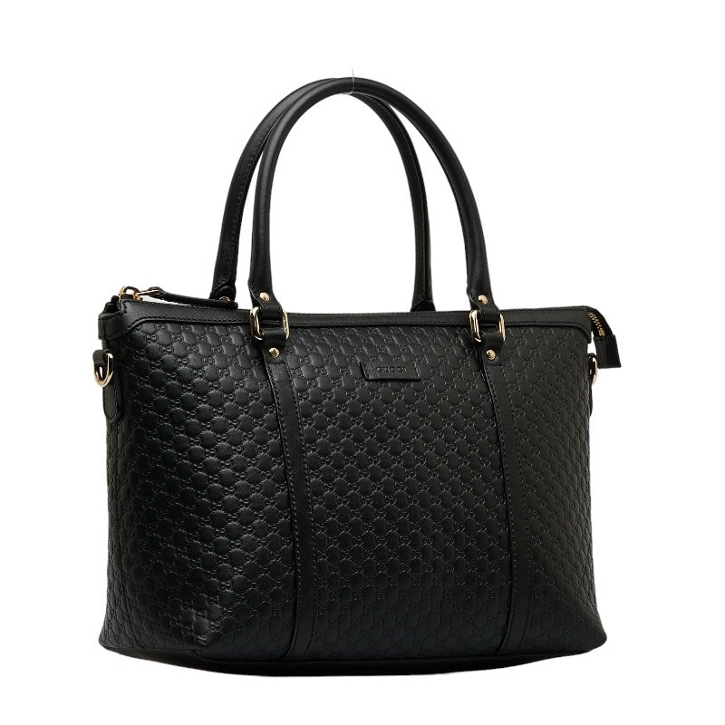 グッチ マイクログッチシマ ハンドバッグ ショルダーバッグ 2WAY 449656 ブラック レザー レディース GUCCI 【中古】