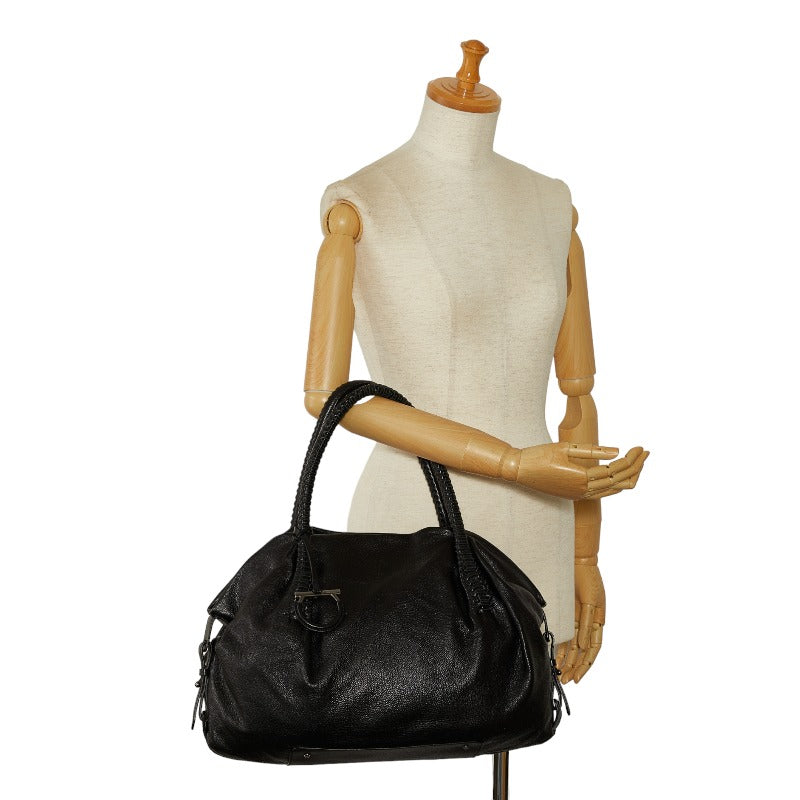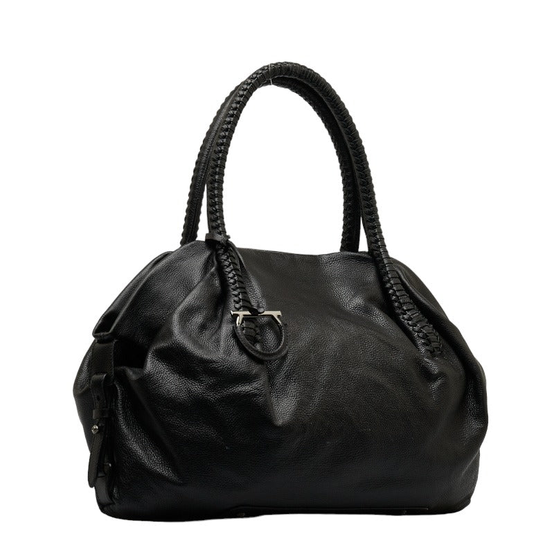 サルヴァトーレフェラガモ ガンチーニ トートバッグ ブラック レザー レディース Salvatore Ferragamo 【中古】