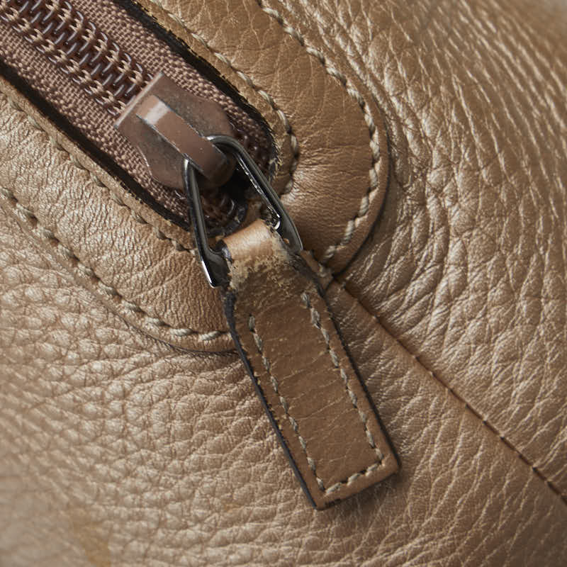 外側⇒薄汚れ・パイピングにスレ 底面⇒薄汚れ ハンドル⇒若干のコバはがれ ショルダー⇒複数の汚れ、コバに複数の亀裂 金具⇒くすみ 開閉口⇒若干のスレ 内側⇒僅かにスレ・生地浮き |