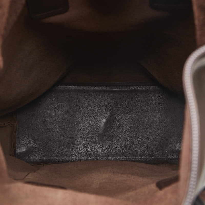 外側⇒たたみジワ・僅かなスレ サイド⇒スレ 底面⇒型崩れ・角スレ・スレ、オープンポケット外側底面に角スレ・コバはがれ ハンドル⇒スレ・コバはがれ 金具⇒小キズ・底鋲に小キズ 開閉口⇒コバはがれ 内側⇒毛羽立ち |