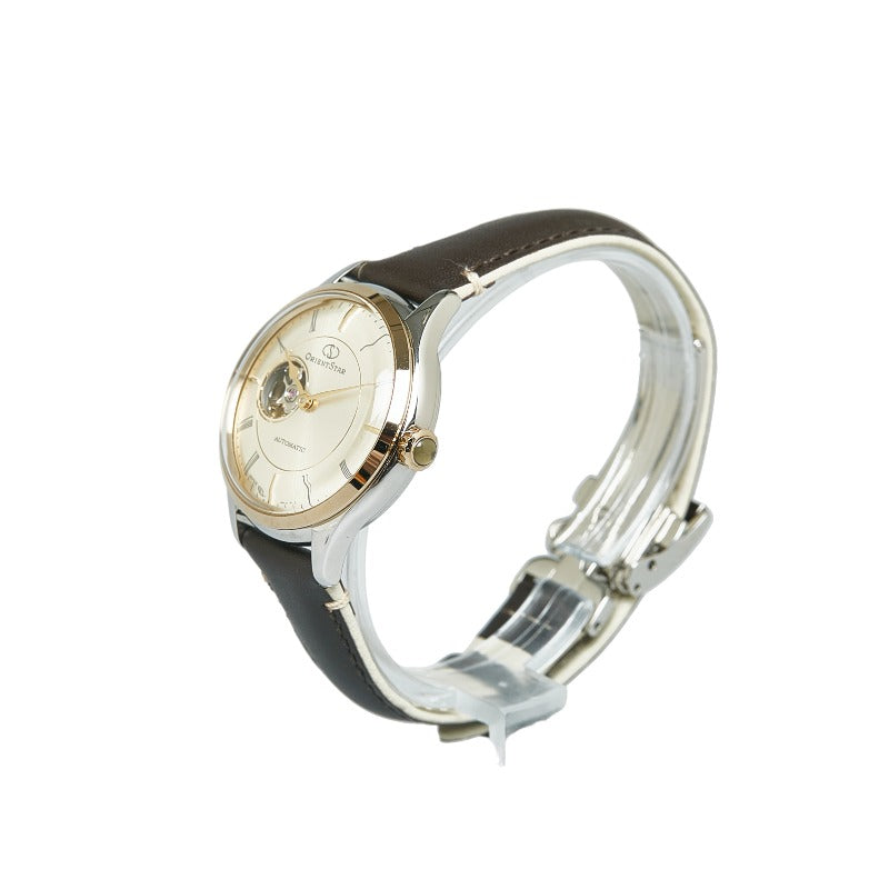 オリエント ORIENT STAR オリエントスター クラシック セミスケルトン 腕時計 自動巻き ゴールド文字盤 ステンレススチール レザー レディース ORIENT 【中古】